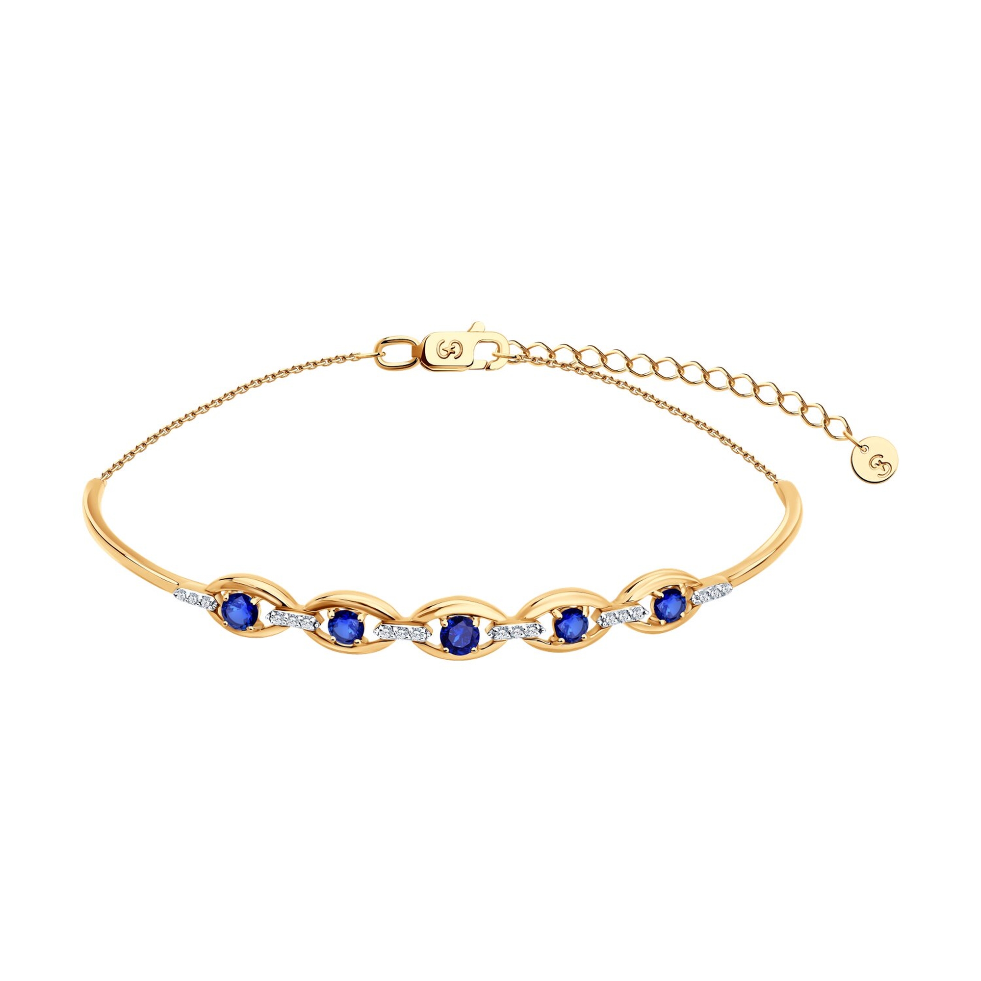 Золотой браслет SOKOLOV 2050098 с бриллиантом и сапфиром