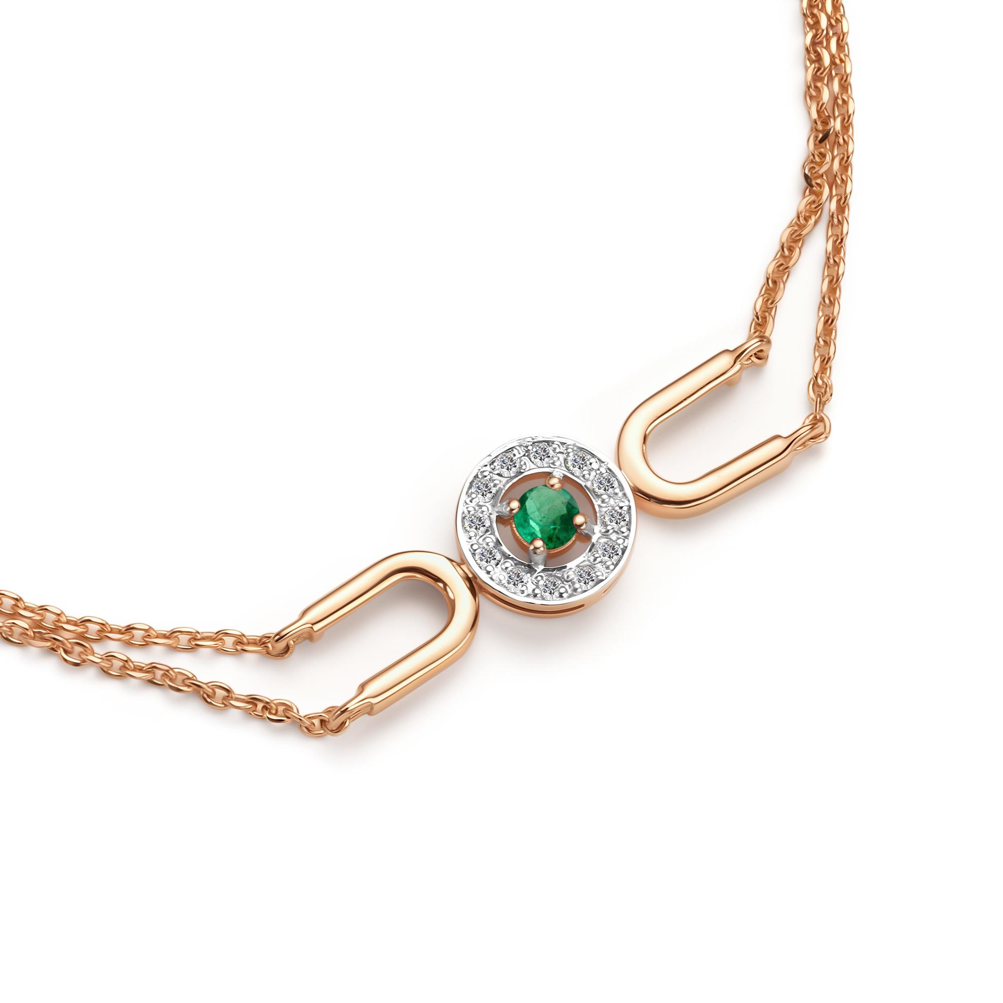 Золотой браслет АЛЬКОР 56869-101 с бриллиантом и изумрудом