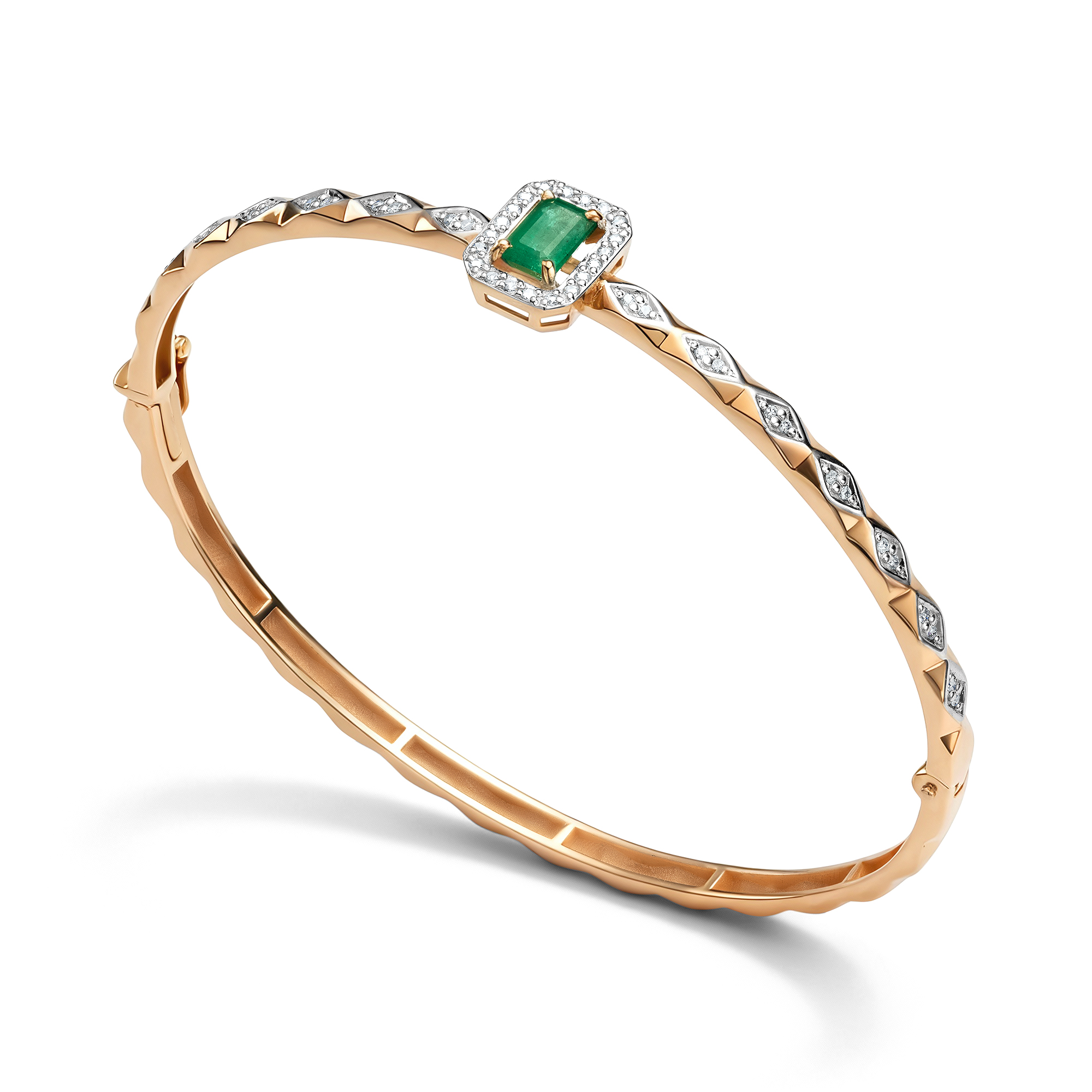 Золотой браслет АЛЬКОР 56876-101 с бриллиантом и изумрудом