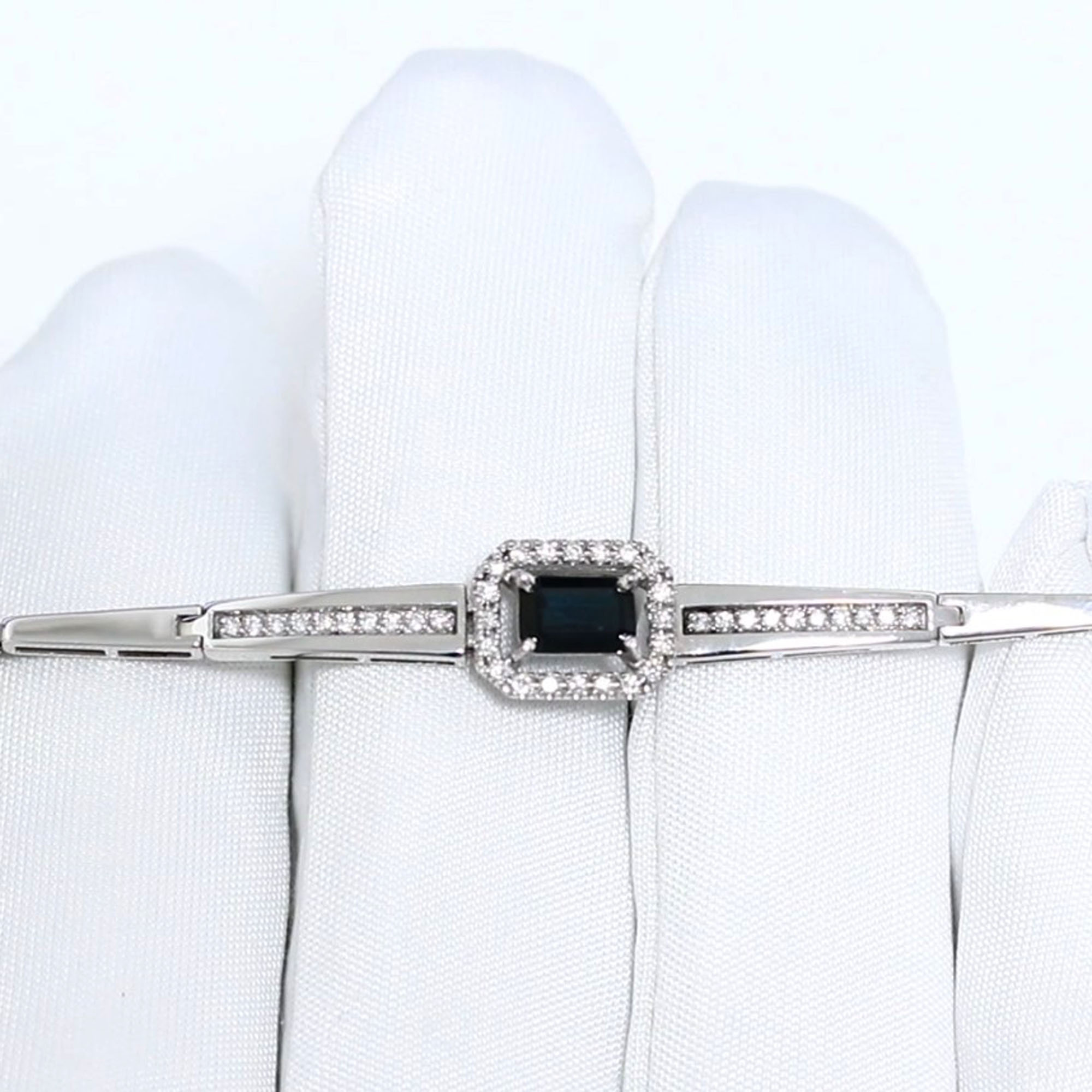 Браслет из белого золота Александра 3080113сб с бриллиантом и сапфиром