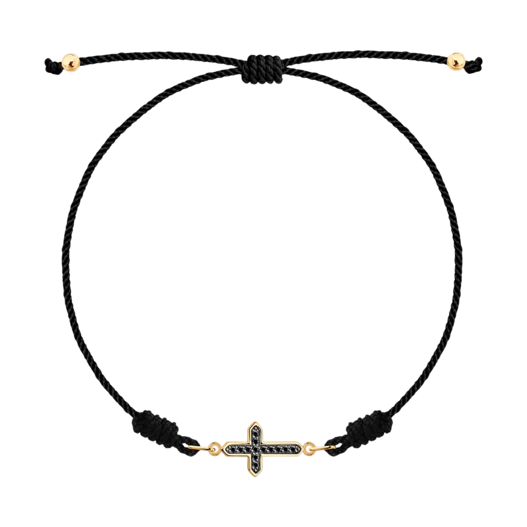 Красивый браслет из золота 585° пробы, в интернет магазине ювелирных украшений Diamant-Online. Текстильный шнурок-крест с декоративным элементом из золота SOKOLOV с черным бриллиантом 7050022 - идеально подойдет для вашего образа. Шнурок и С драгоценными вставками продаются только от официального производителя "SOKOLOV" с доставкой по всей России.