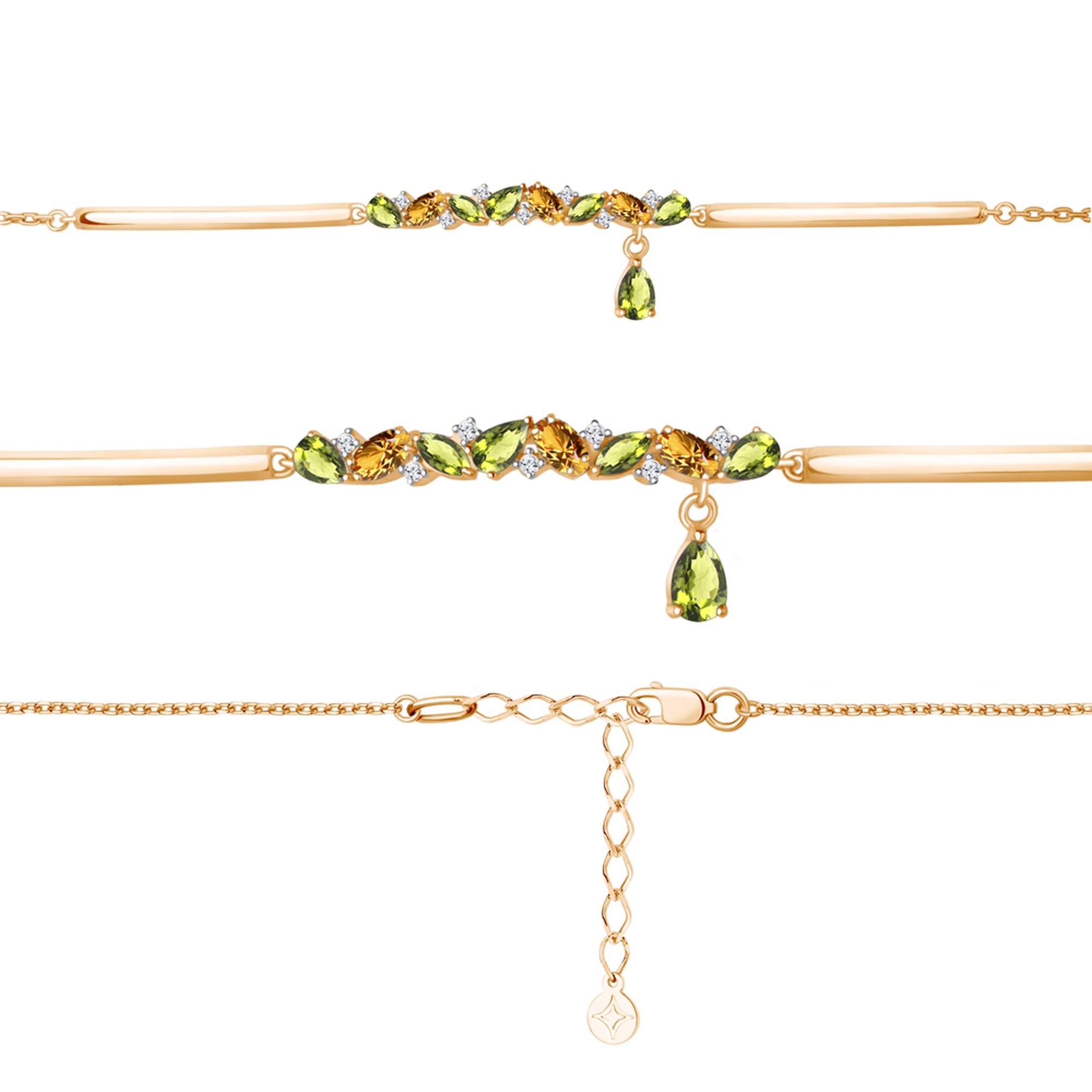 Браслет из золочёного серебра AQUAMARINE А7490638А-п с фианитом и хризолитом