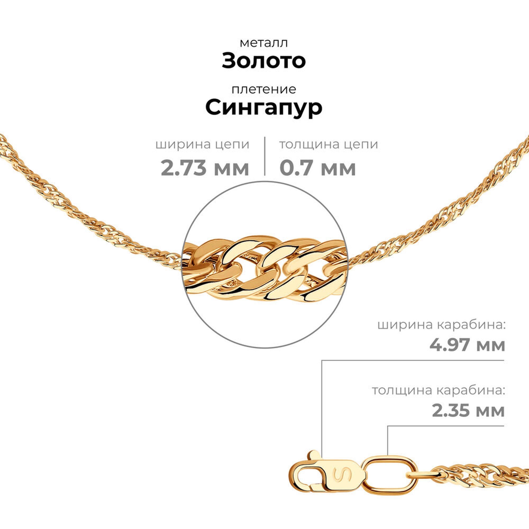 Привлекательная цепь для женщин, из лучшего качества золота 585° пробы. Купить цепь 582060502 с плетением Сингапур от SOKOLOV, по привлекательной цене в интернет-магазине ювелирных изделий Diamant.