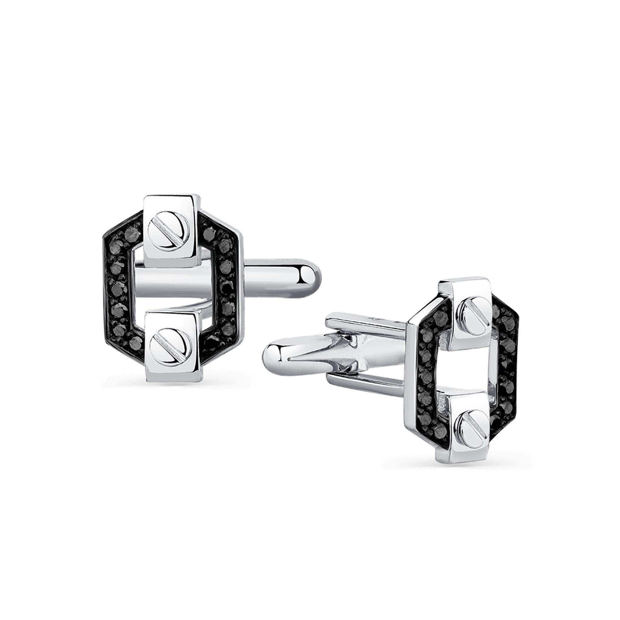 Запонки из белого золота Мастер Бриллиант 05M4-240022-00-48 с чёрным бриллиантом