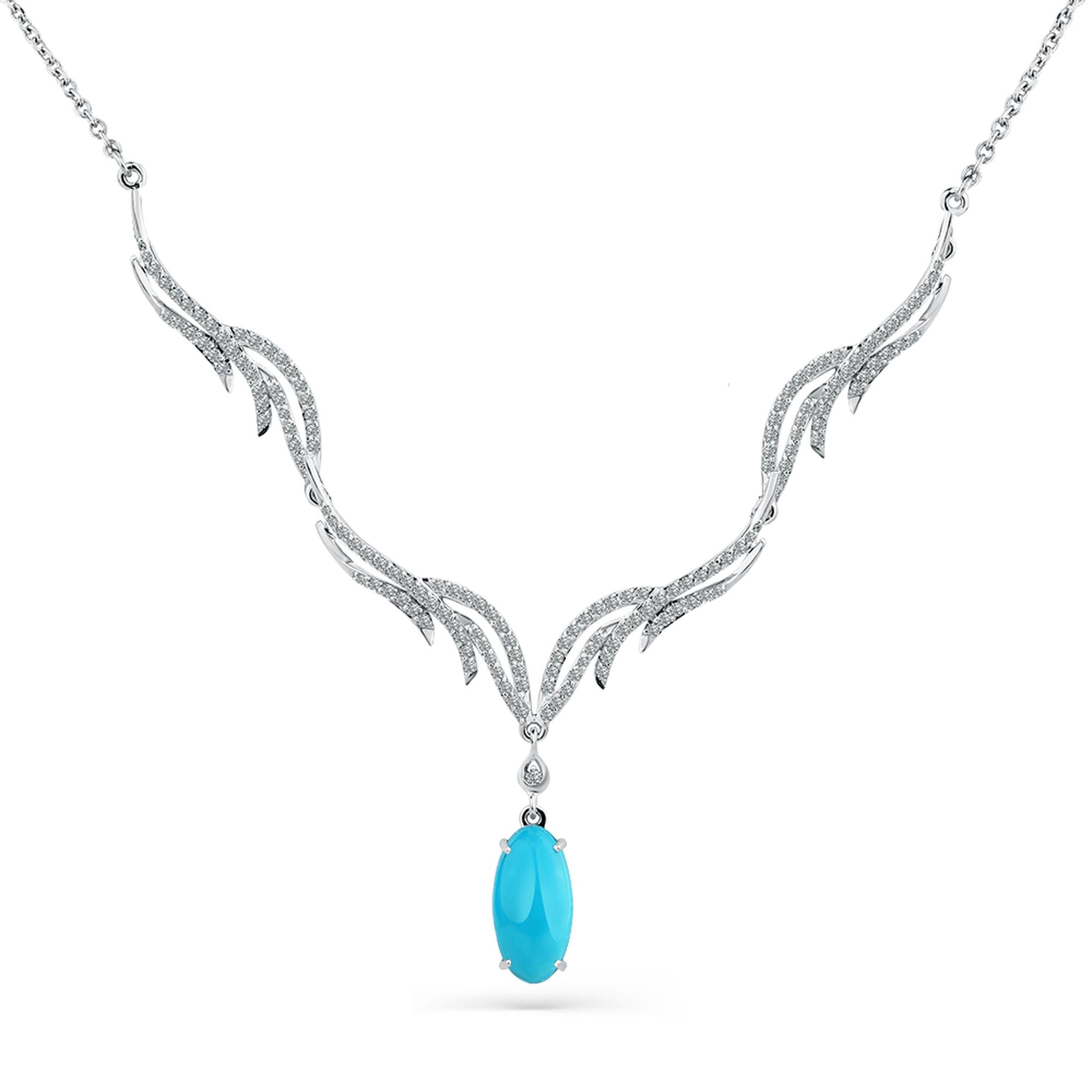 Колье из белого золота Мастер Бриллиант 05M6-260474-00-38 с бриллиантом и бирюзой
