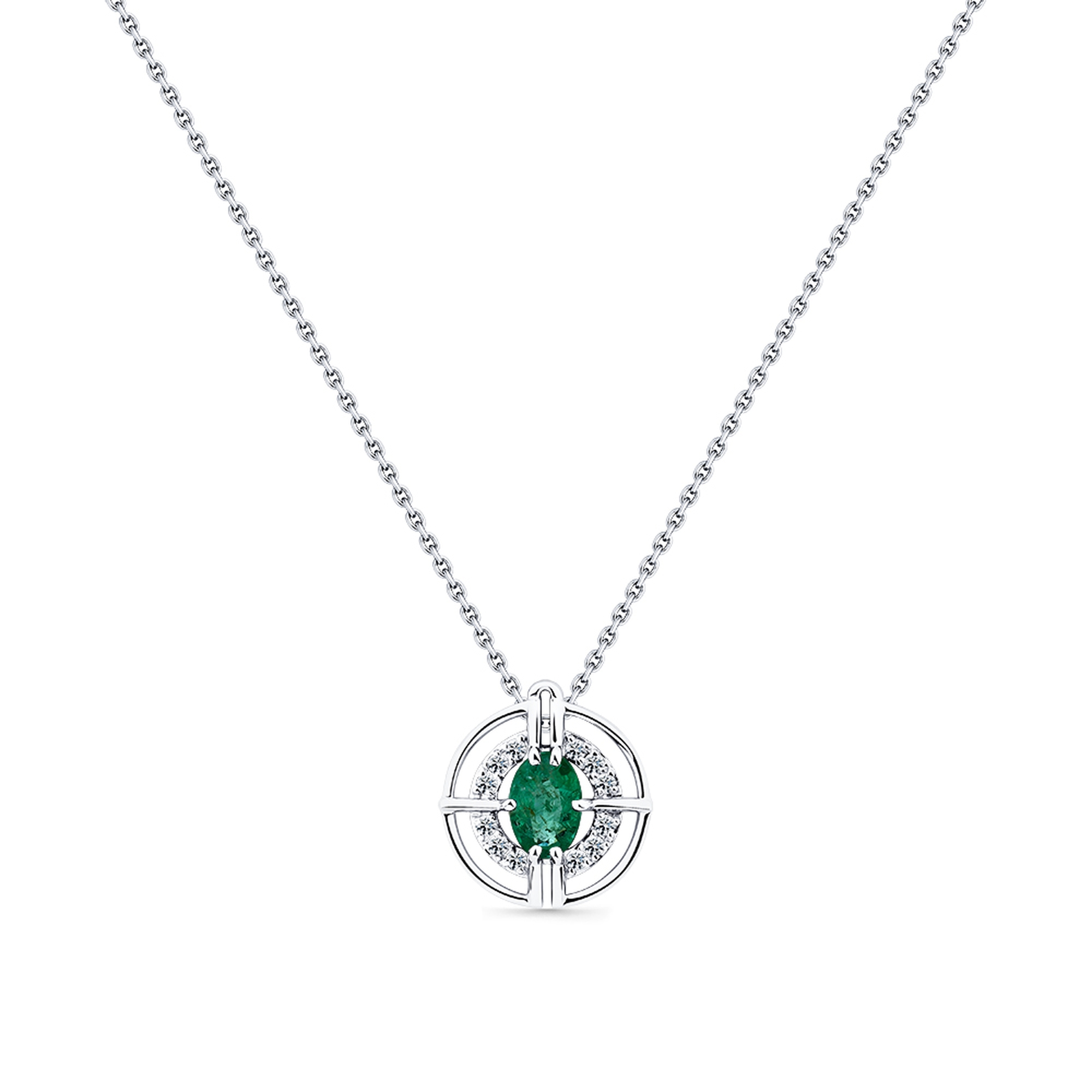 Колье из белого золота Мастер Бриллиант 05M6-260595-97-01 с бриллиантом и изумрудом