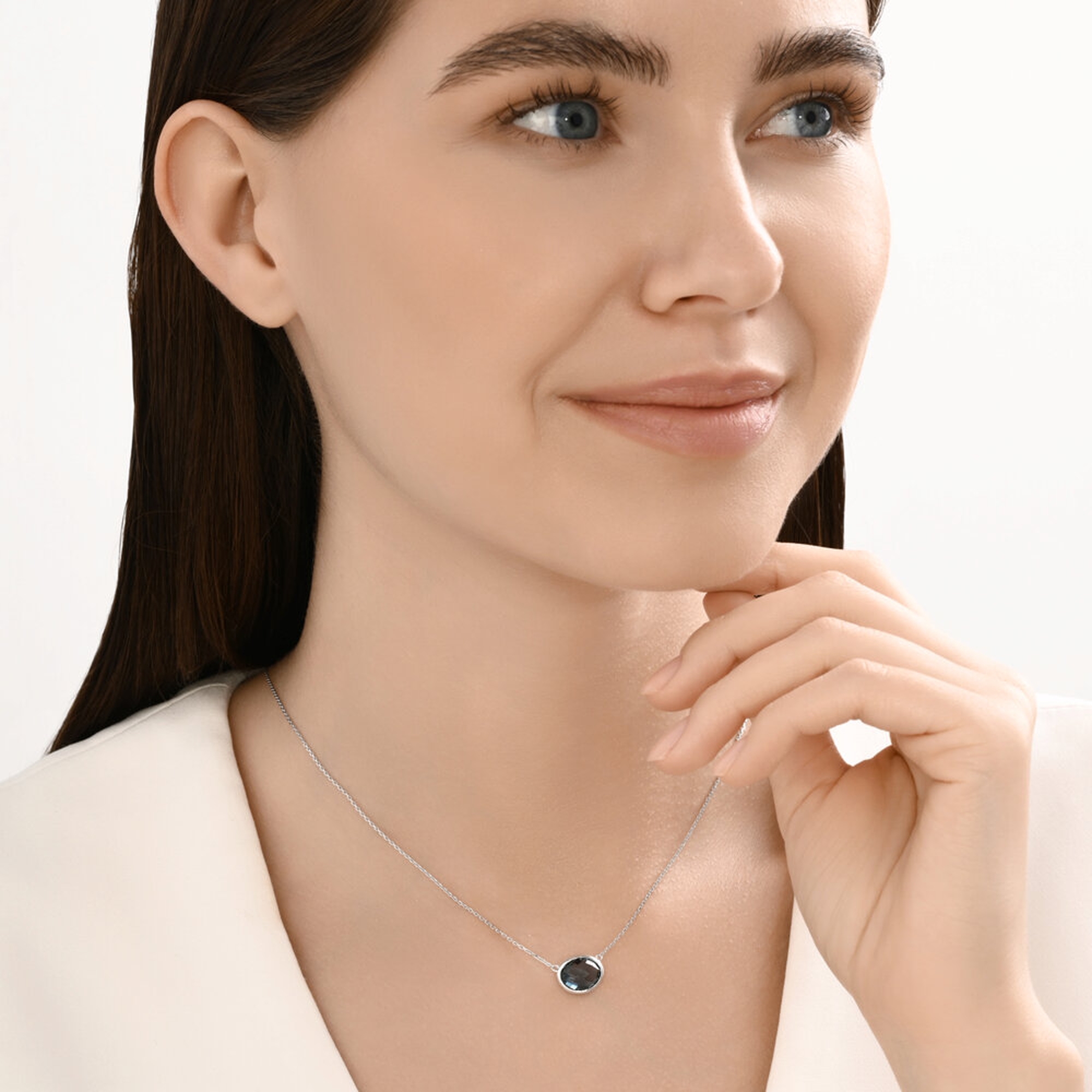 770496-3: Колье из белого золота с лондон топазом