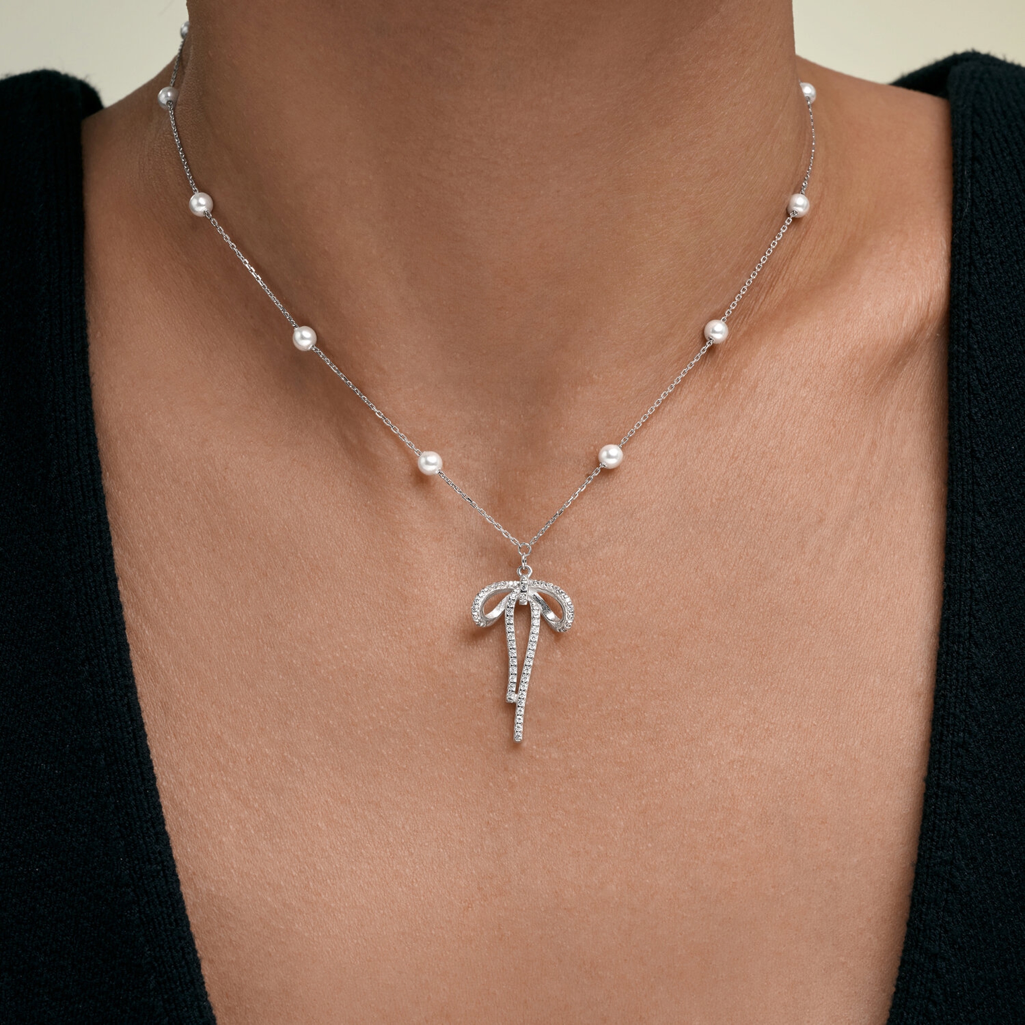 Серебряное колье SOKOLOV 94071503 с фианитом и жемчугом
