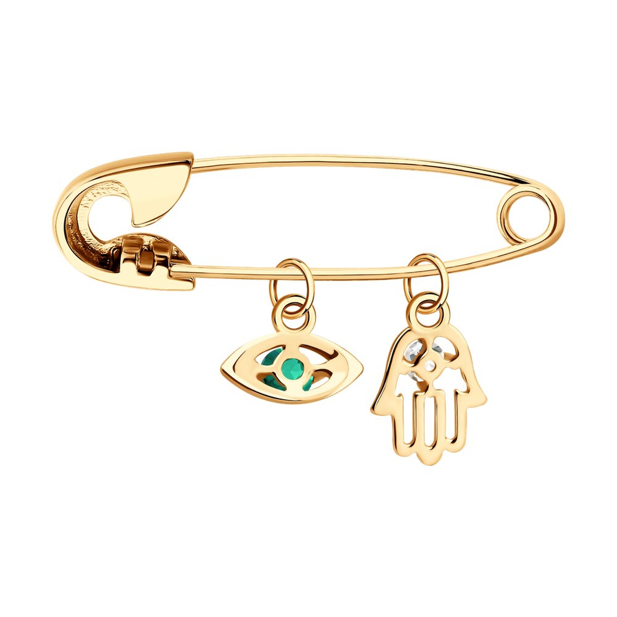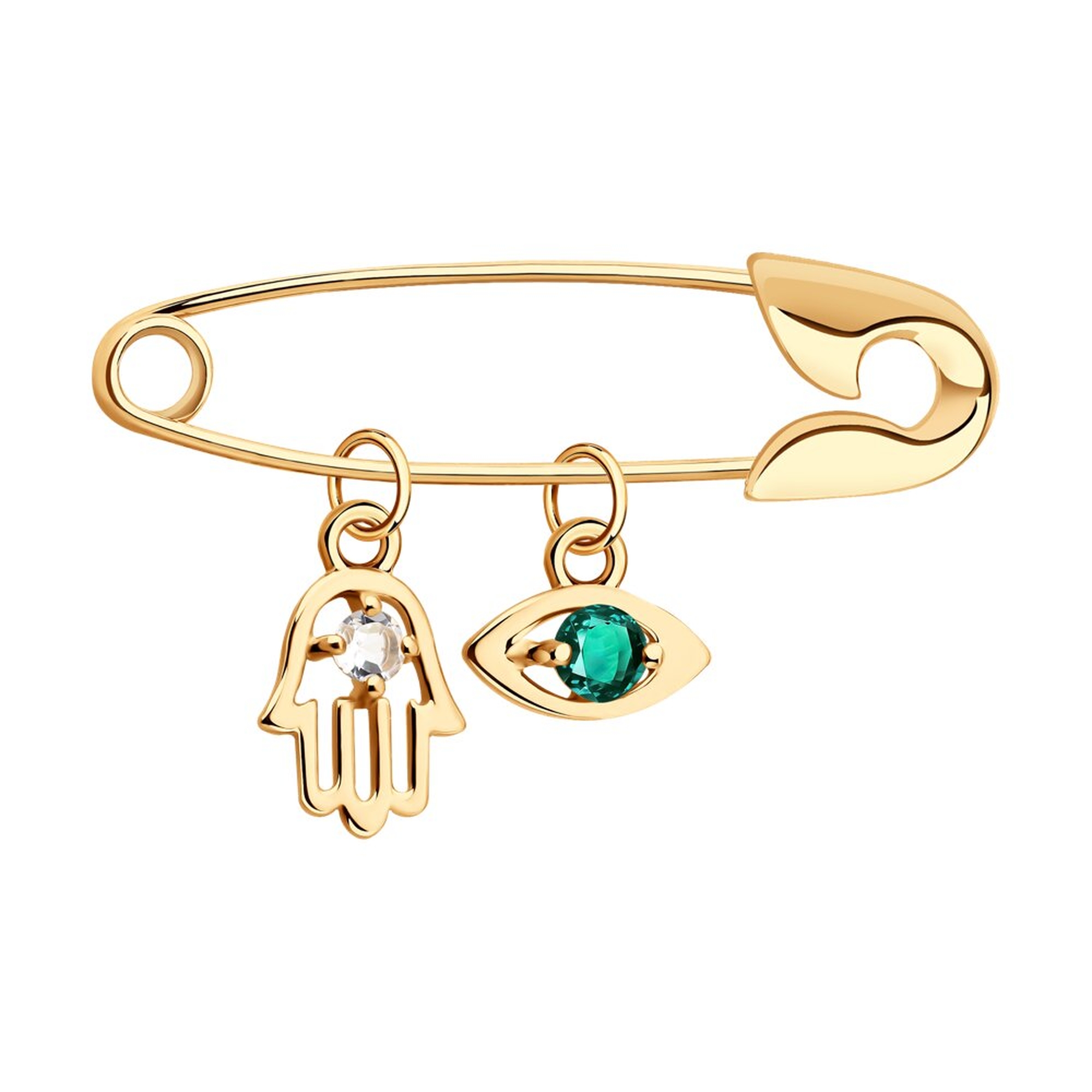 Золотая булавка SOKOLOV 740410 с топазом и изумрудом