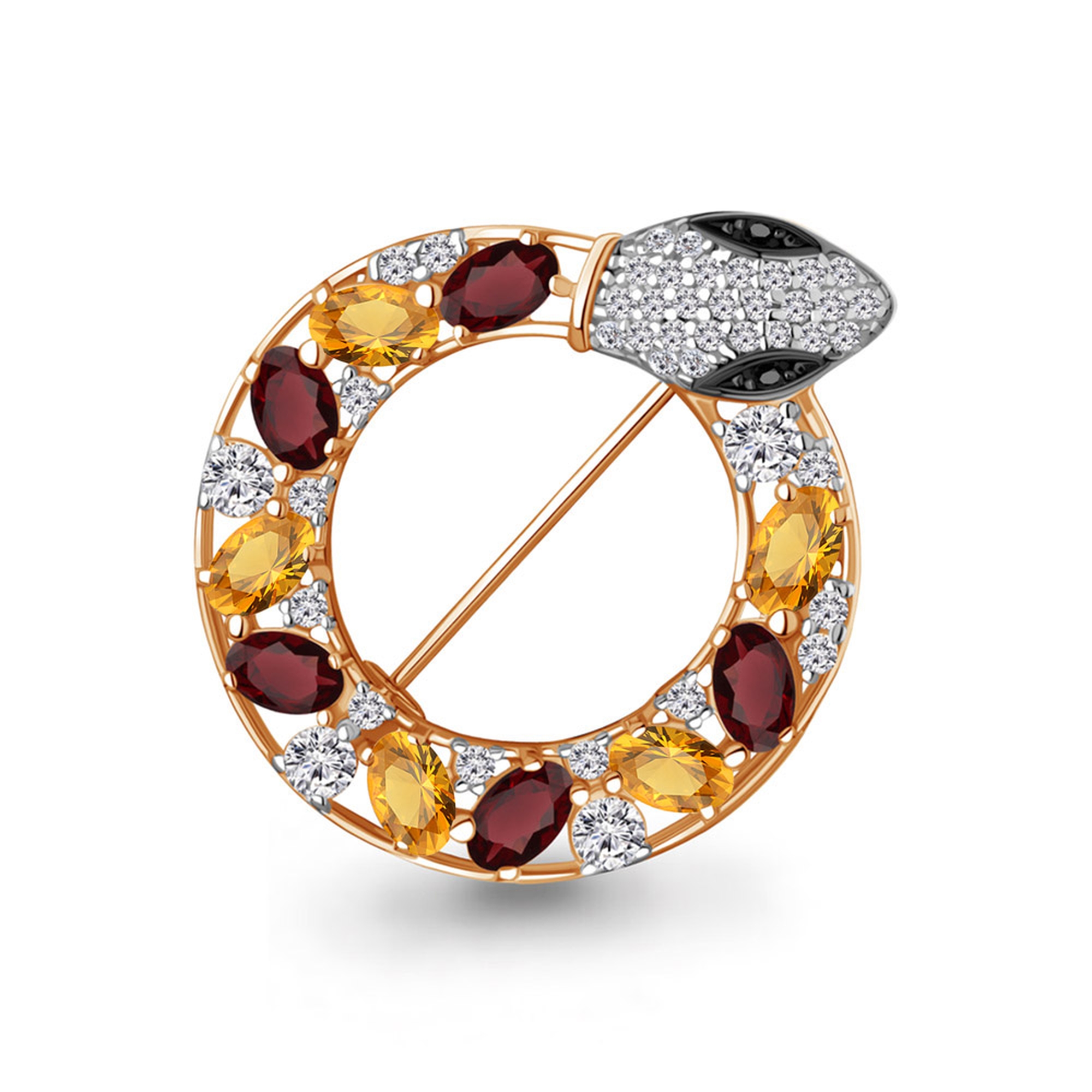 Брошь Символ года Змея из золоченого серебра AQUAMARINE с фианитом. цитрином,гранатом и ювелирным кристалом А7747834АЧ-п - это отличное украшение по самой низкой цене, что можно найти в интернете. А если вы найдете дешевле, то мы обязательно сделаем скидку! Сайт Diamant-Online является официальным представителем и предоставляет только оригинальные украшения AQUAMARINE.