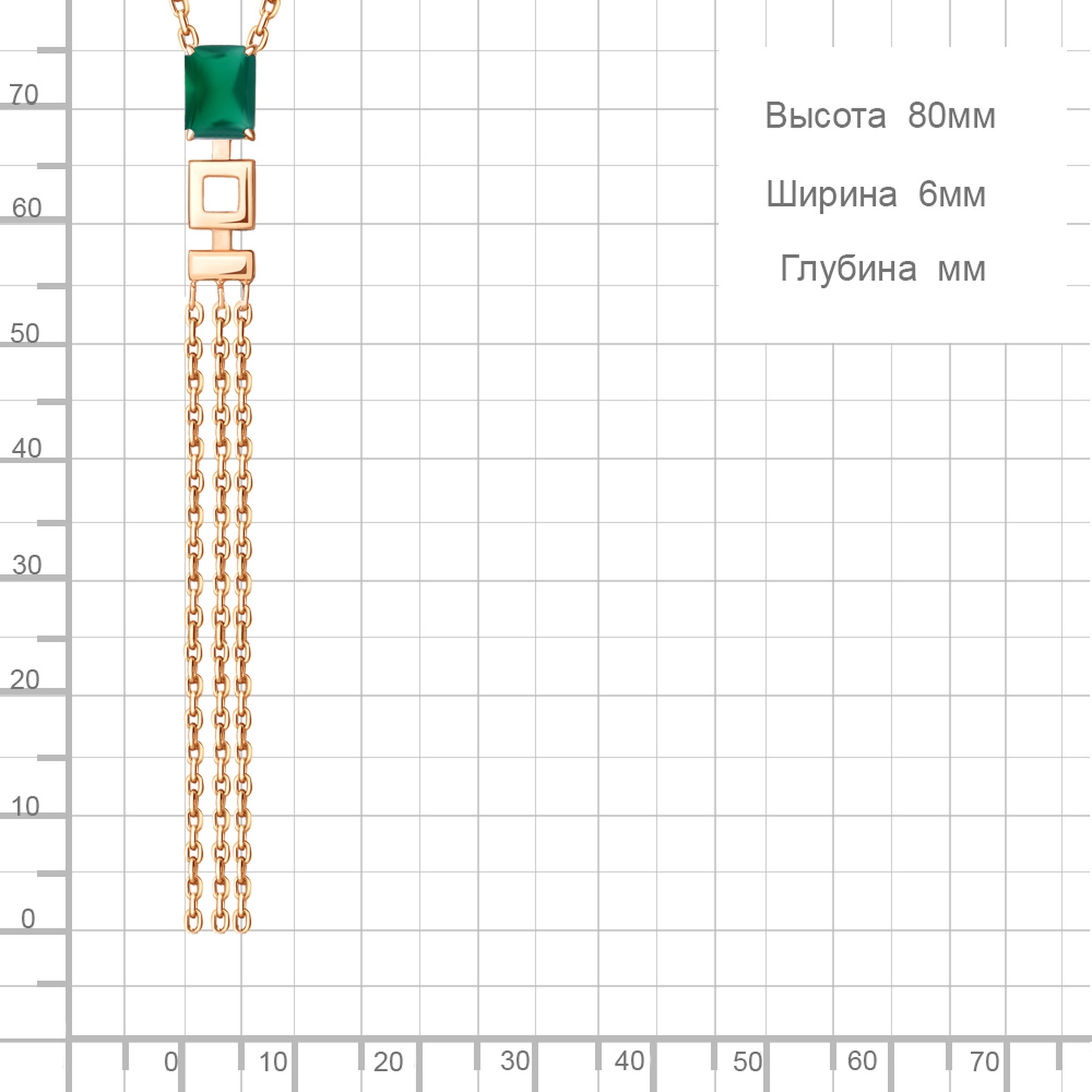 Ширина 1,2 мм Длина подвесного элемента 79 мм Ширина подвесного элемента 6 мм Размер камня 8*6 мм |
