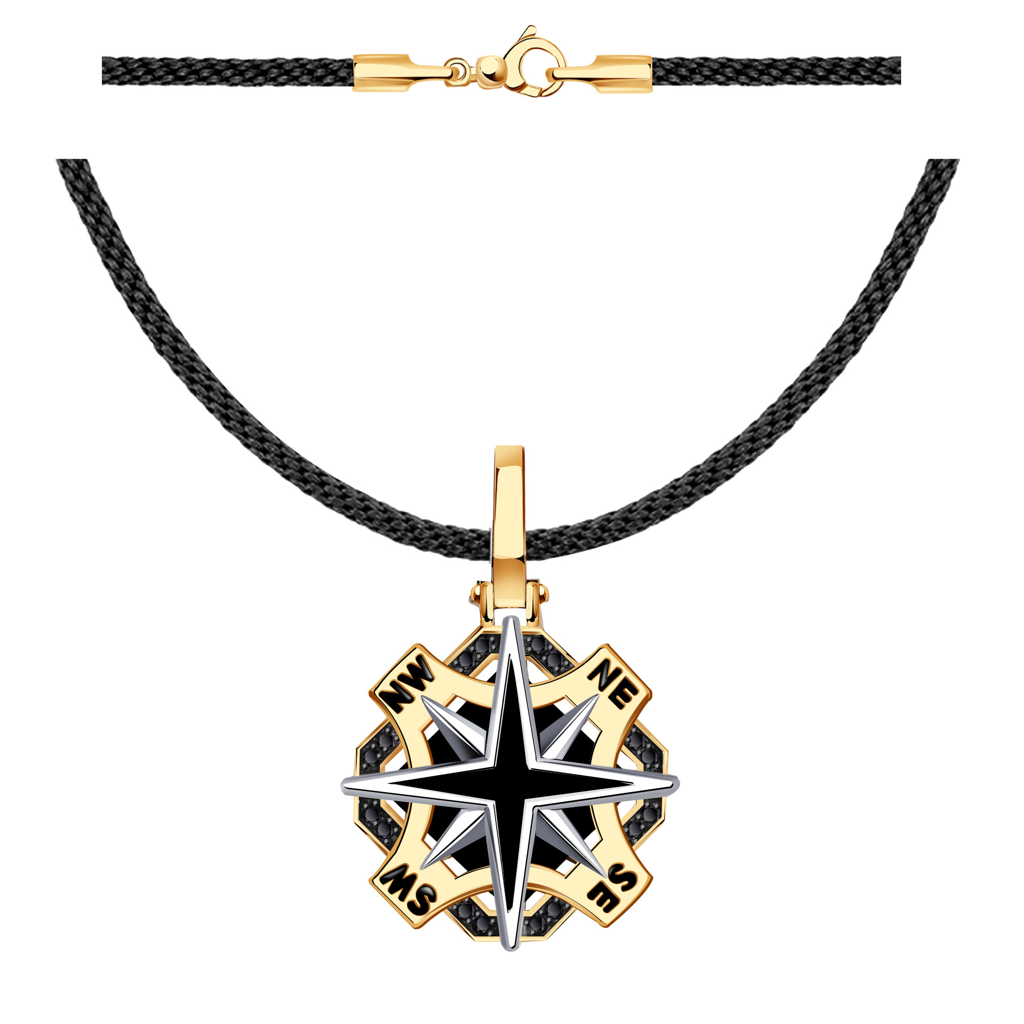 Текстильный шнурок-колье с декоративным элементом и замком из золота BERGER с ониксом, фианитом и эмалью Б770181ч