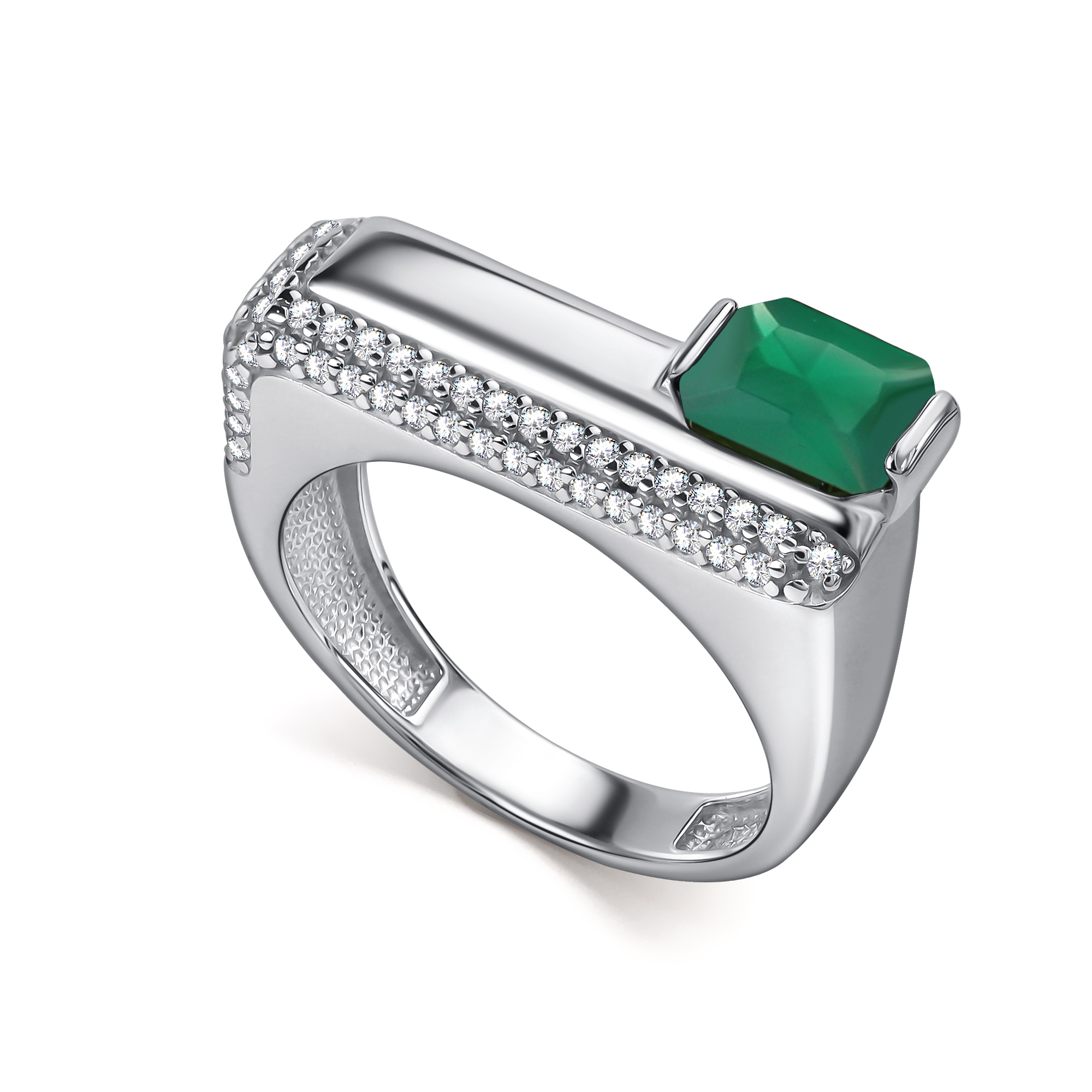 Серебряное кольцо АЛЬКОР 01-5459/00АГ-00 с фианитом и агатом