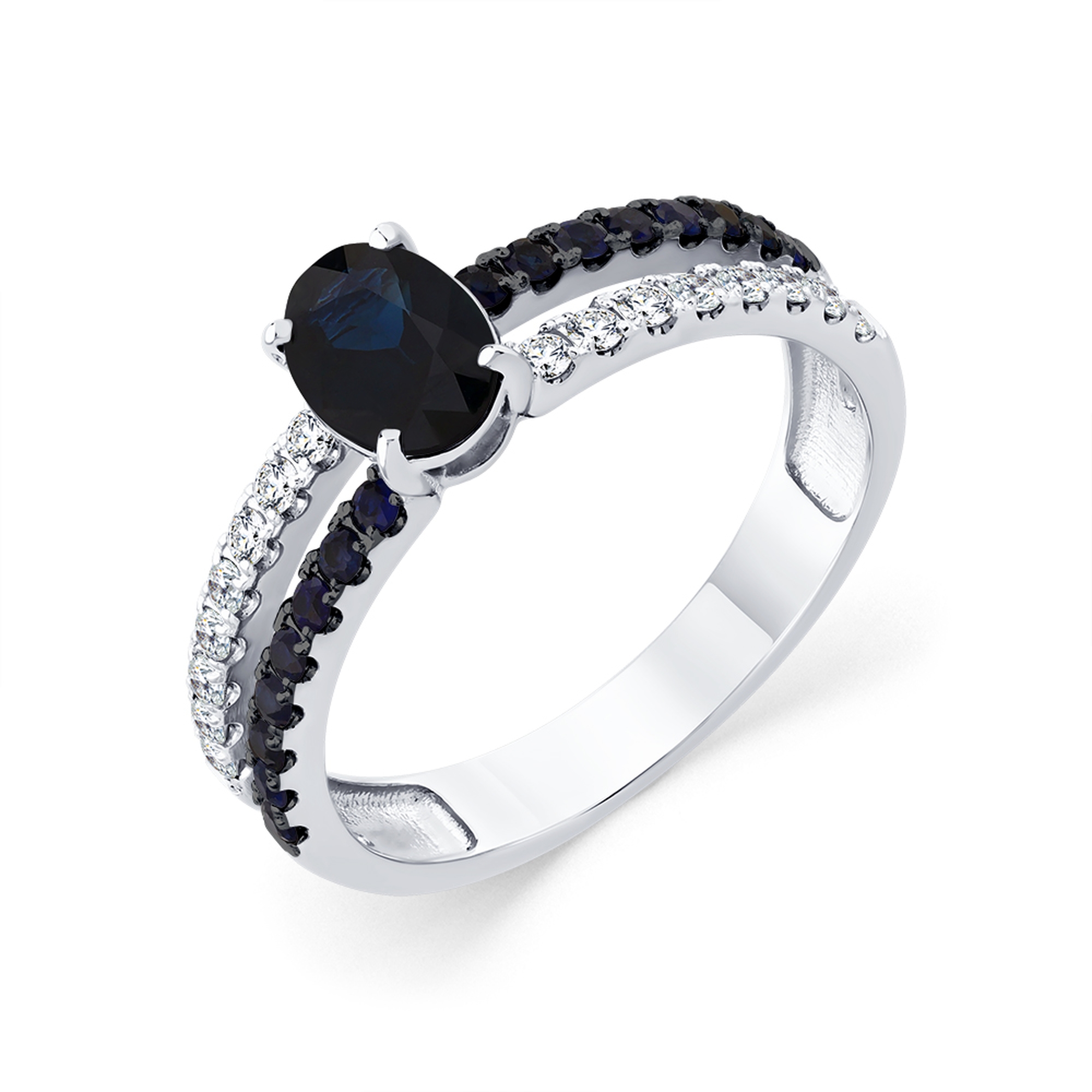 Кольцо из белого золота Мастер Бриллиант 05M1-209342-01-02 с бриллиантом и сапфиром