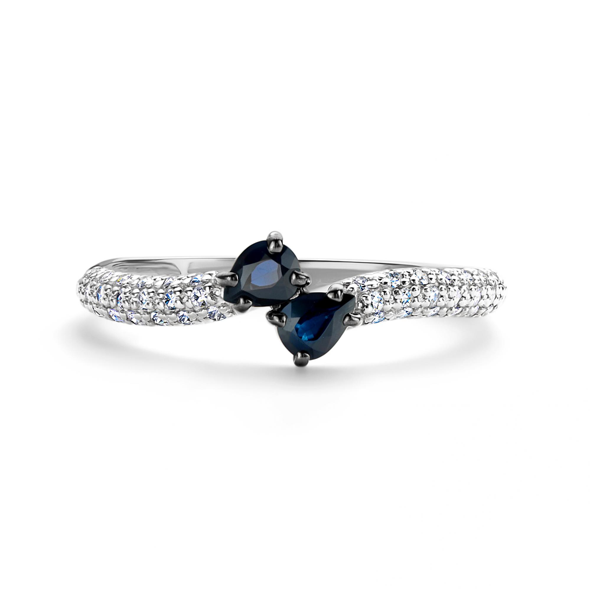 Кольцо из белого золота АЛЬКОР 16564-202 с бриллиантом и сапфиром