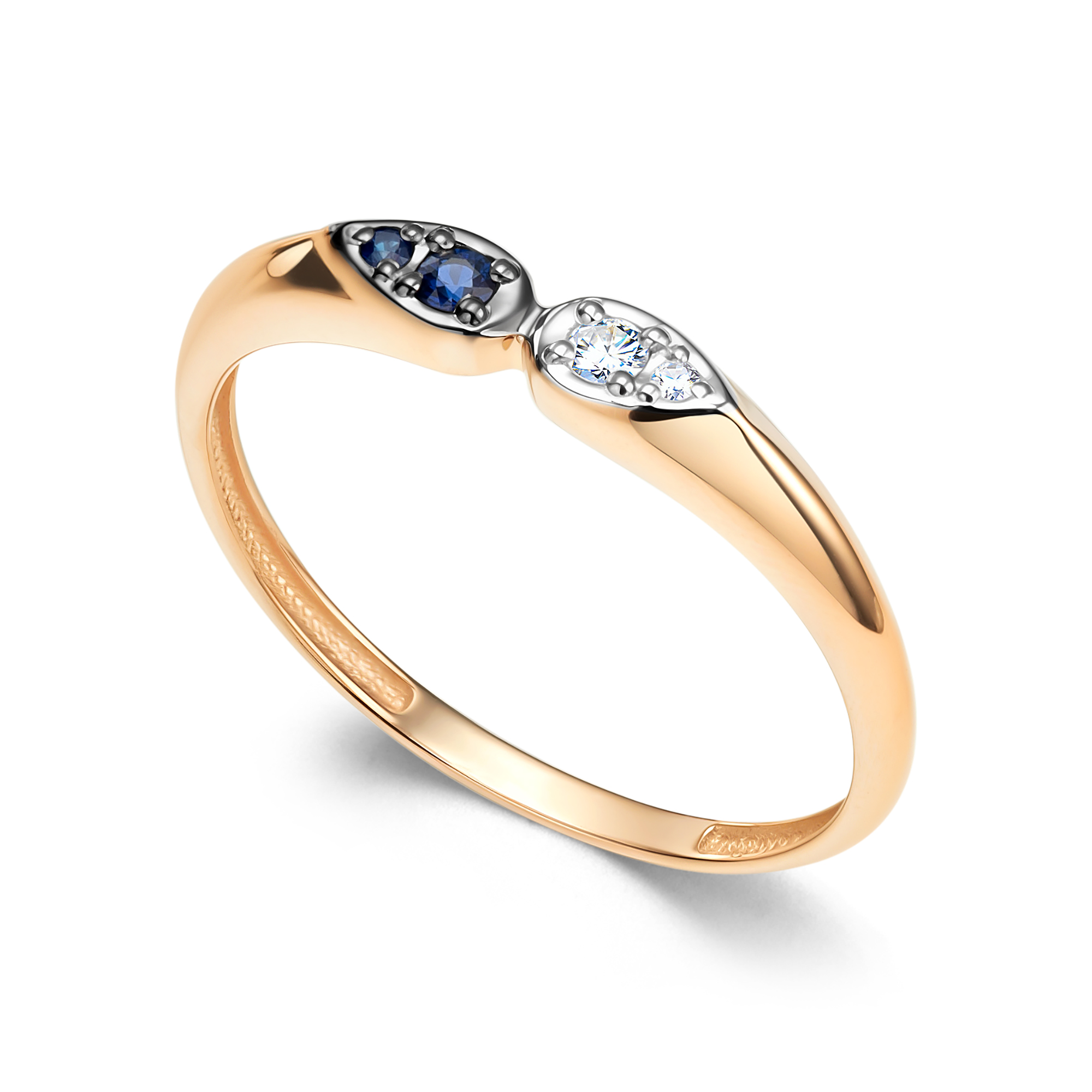 Золотое кольцо АЛЬКОР 16565-102 с бриллиантом и сапфиром