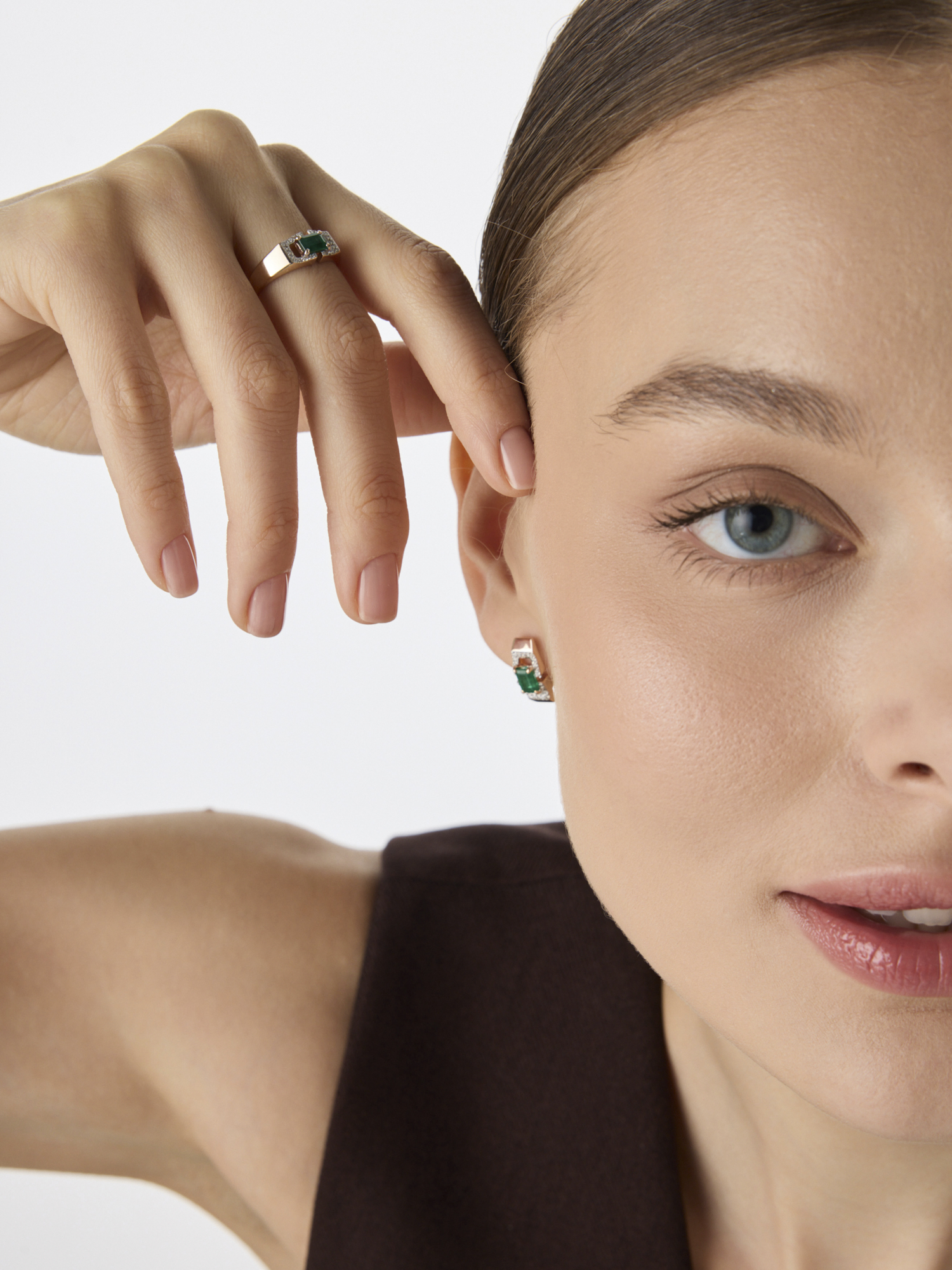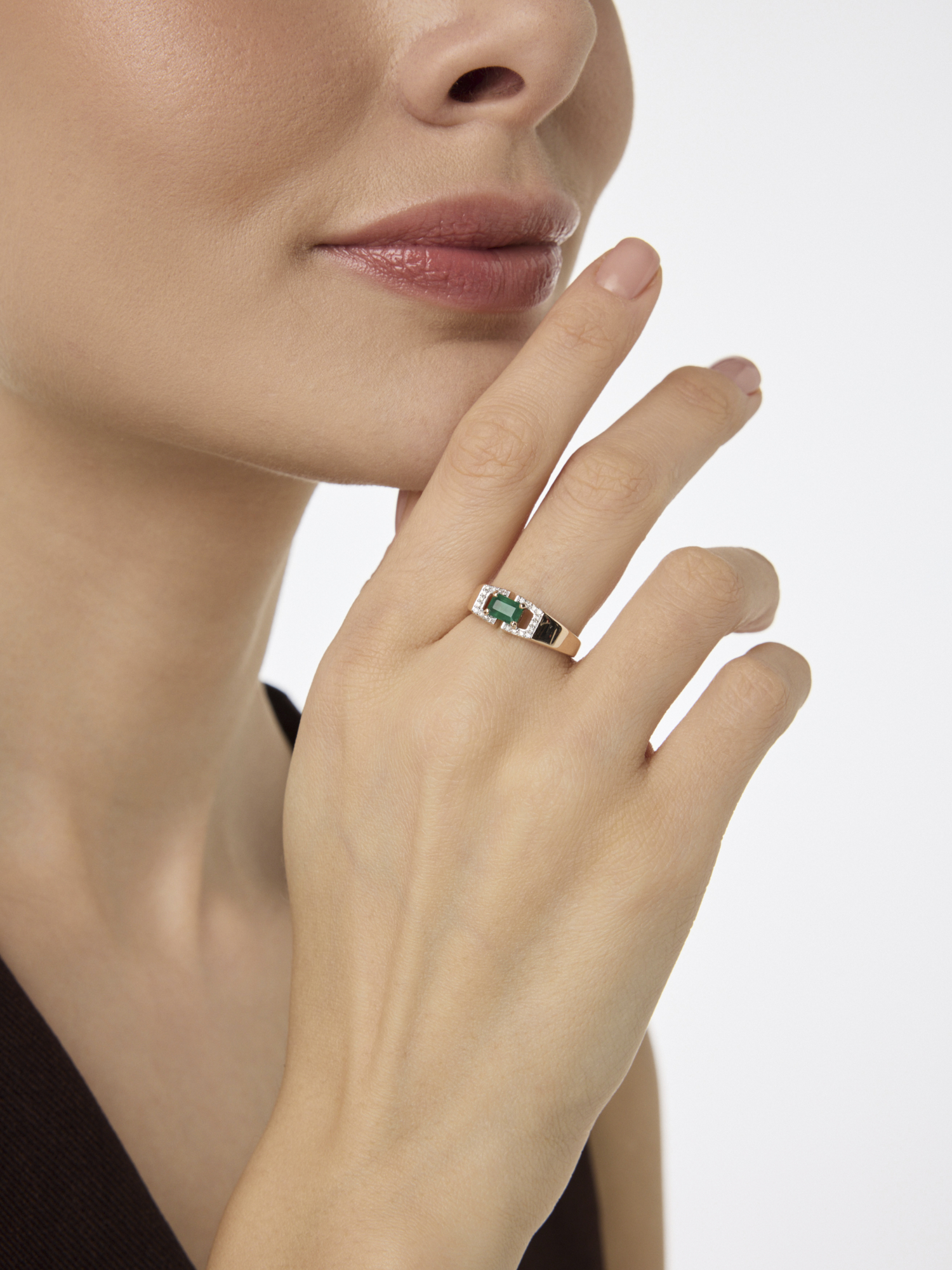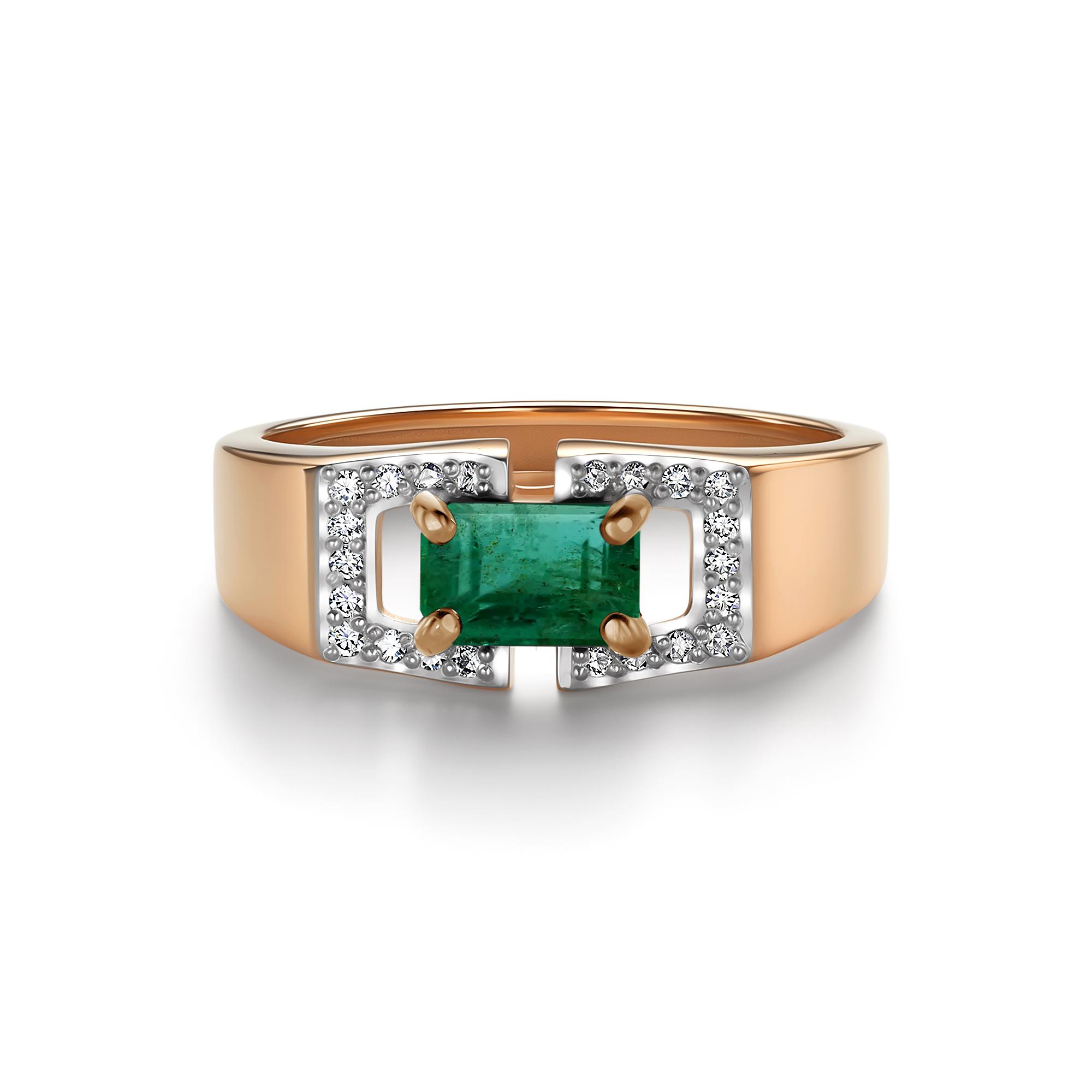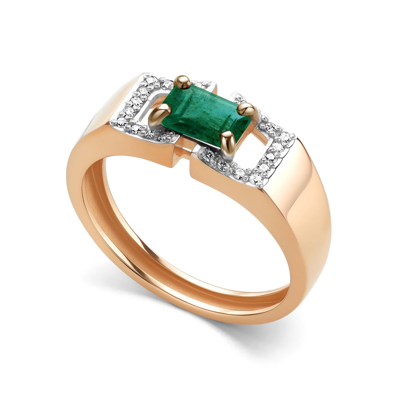 Золотое кольцо АЛЬКОР 16694-101 с бриллиантом и изумрудом