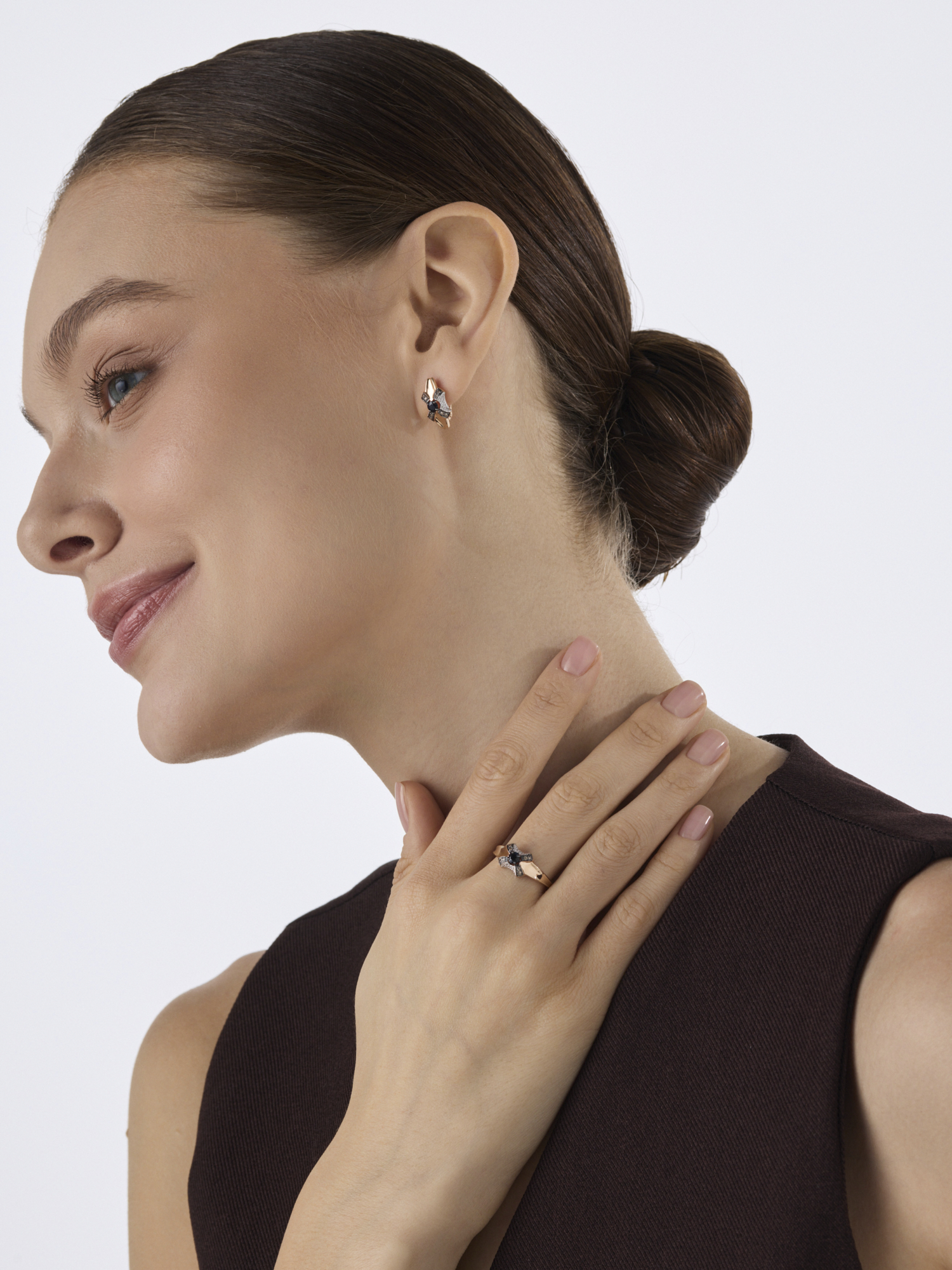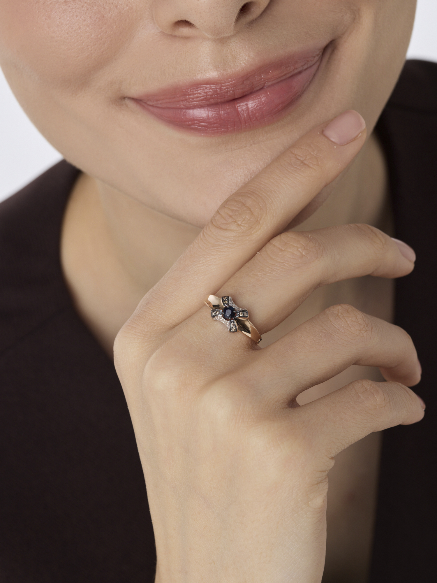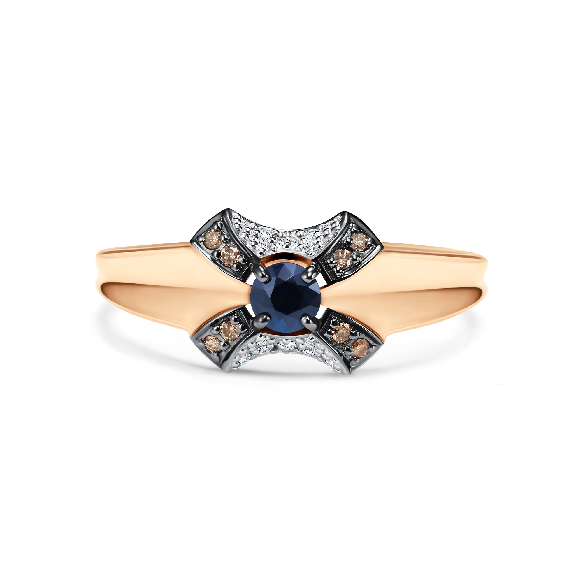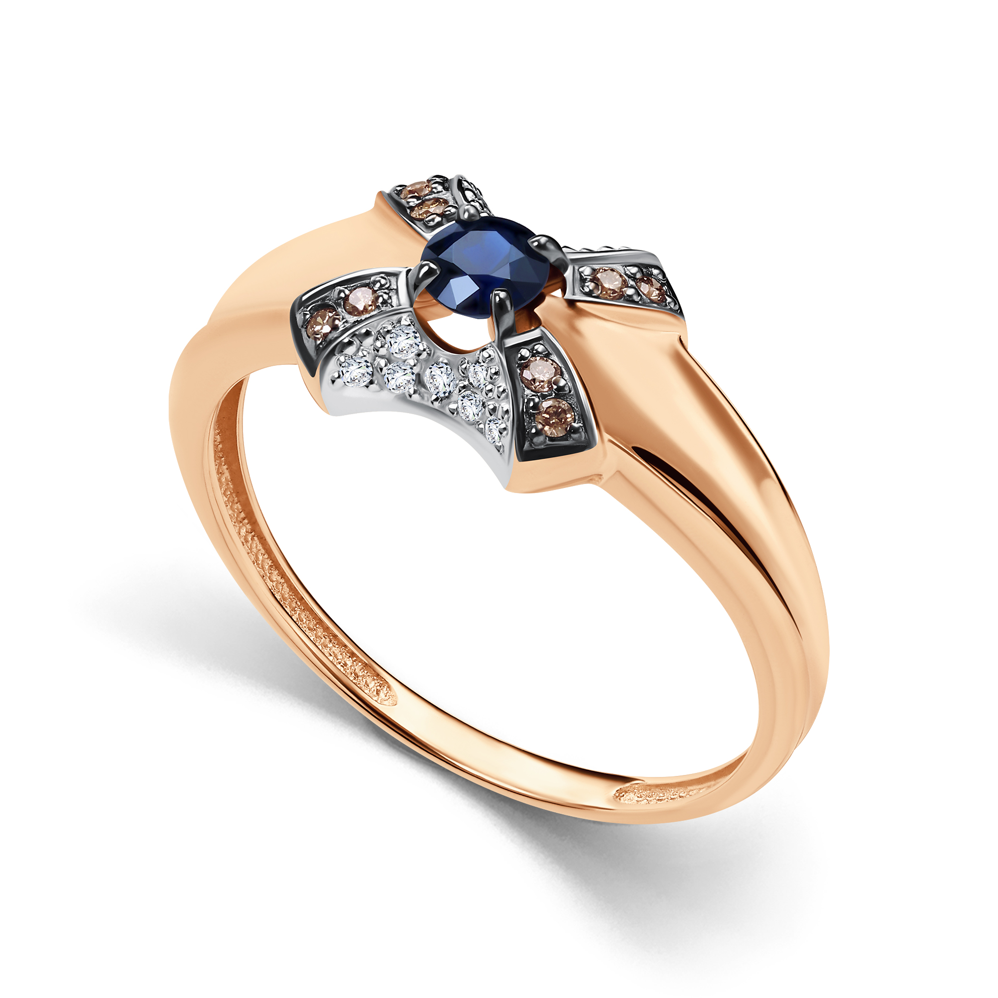 Золотое кольцо АЛЬКОР 16698-170 с бриллиантом, сапфиром и коньячным бриллиантом
