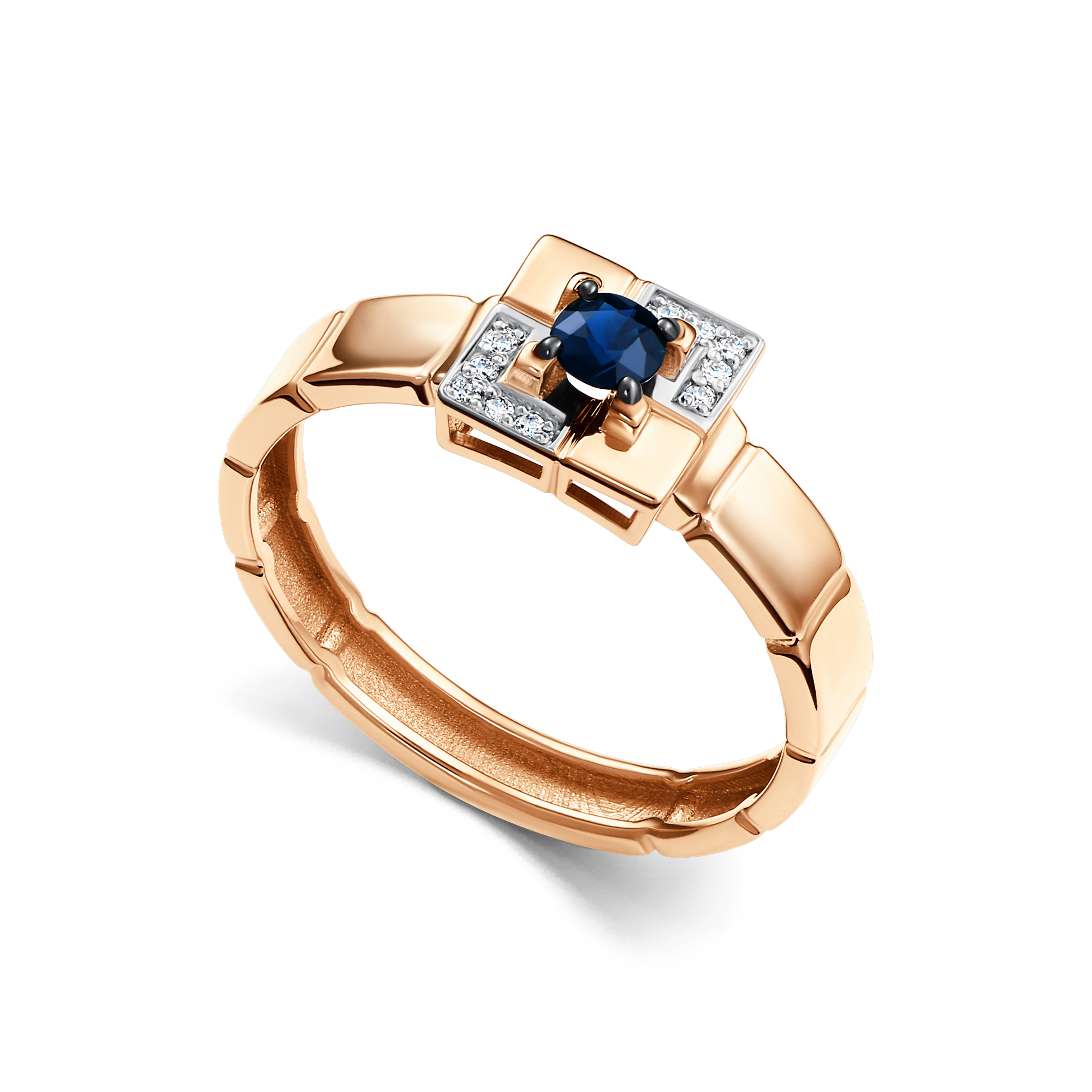 Золотое кольцо АЛЬКОР 16896-102 с бриллиантом и сапфиром