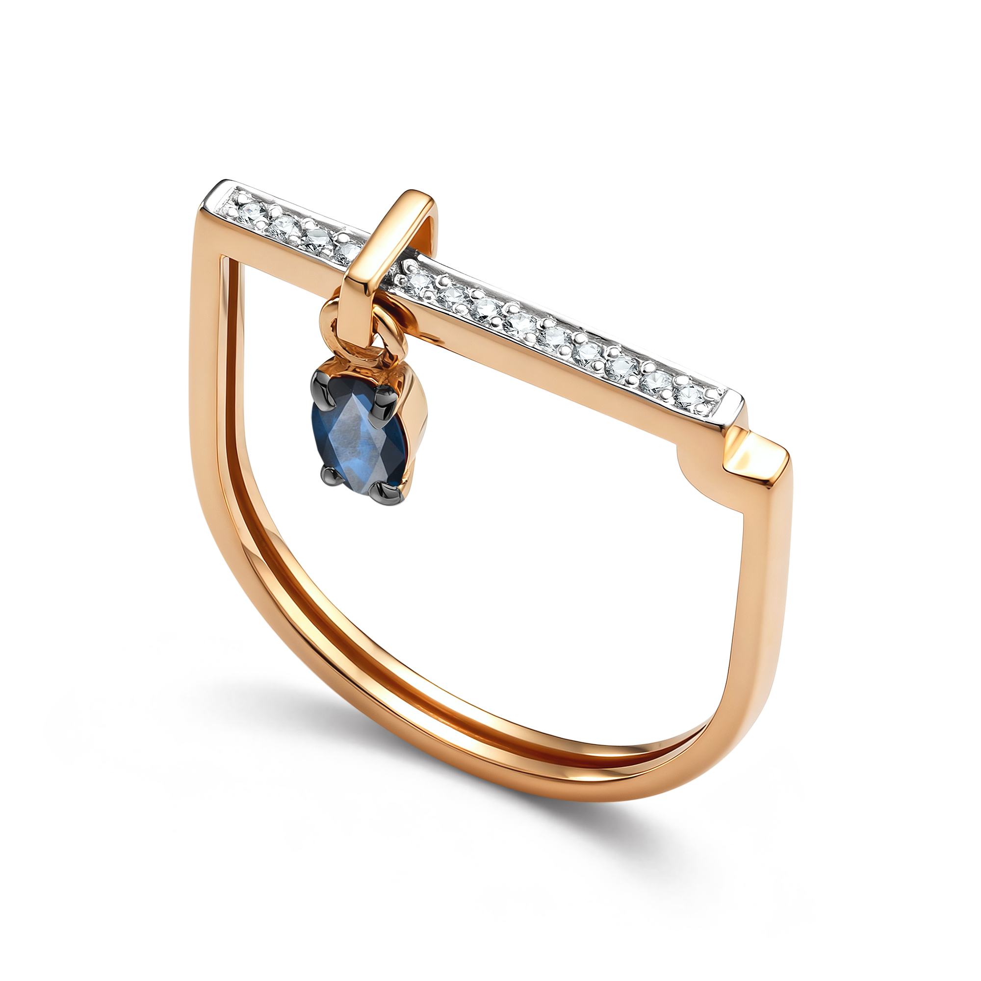 Золотое кольцо АЛЬКОР 16916-102 с бриллиантом и сапфиром
