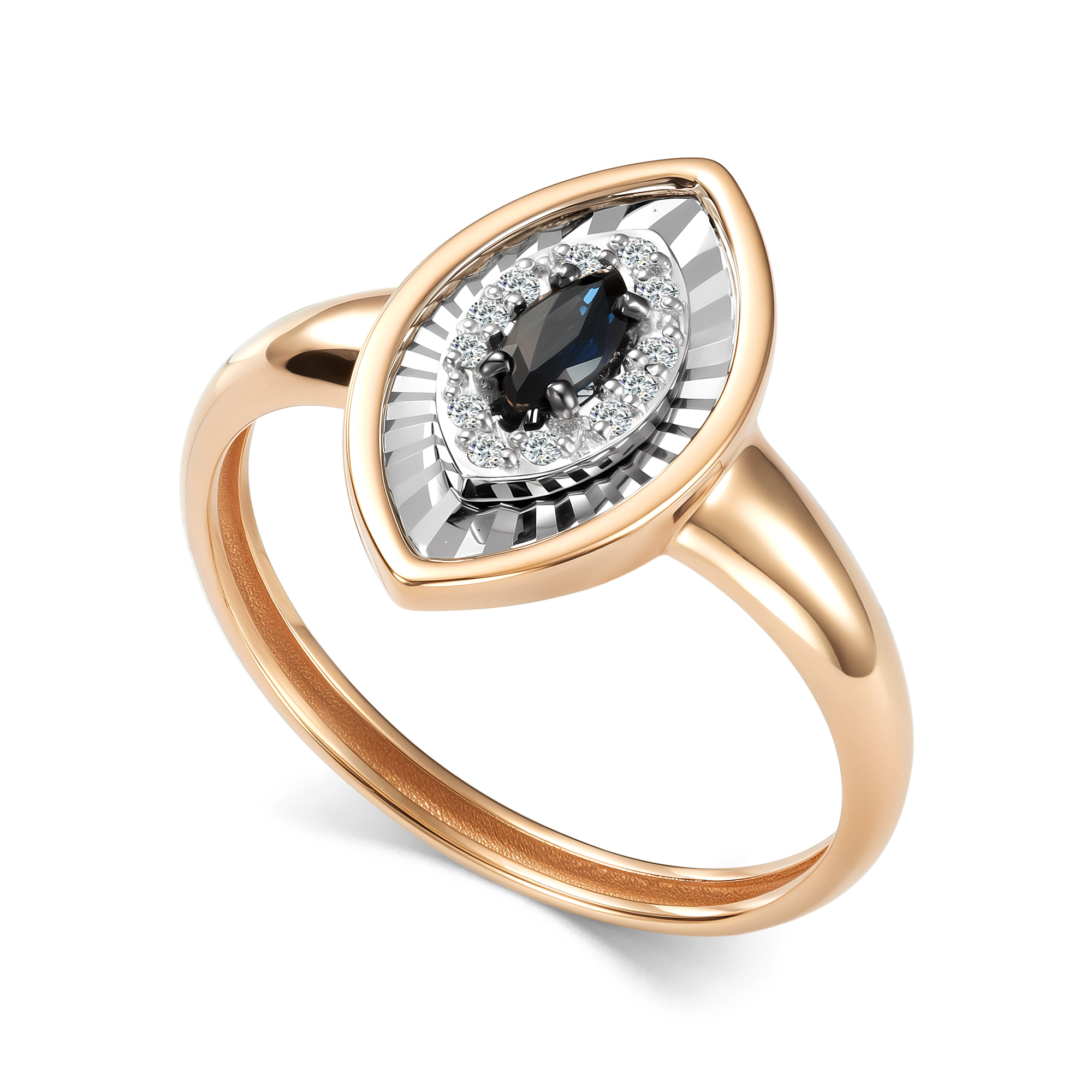 Золотое кольцо АЛЬКОР 17016-102 с бриллиантом и сапфиром