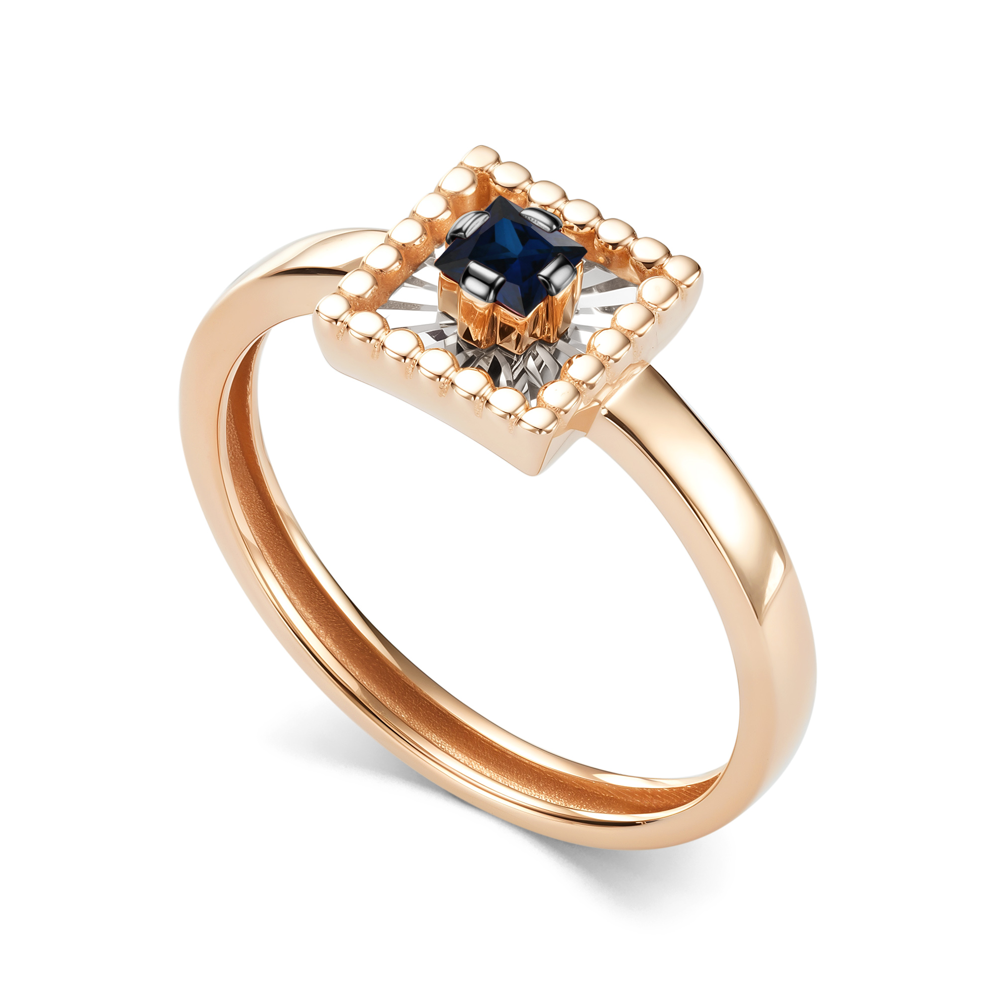 Золотое кольцо АЛЬКОР 17017-102 с сапфиром