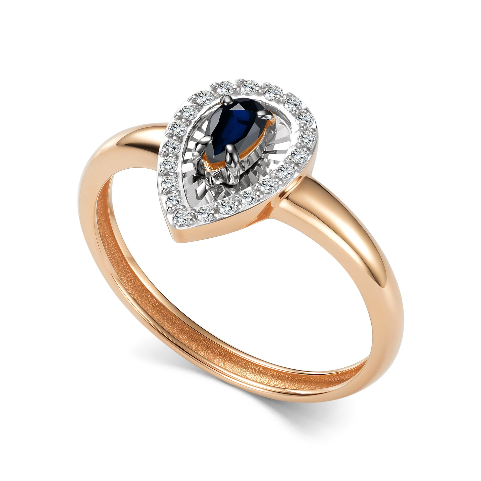 Золотое кольцо АЛЬКОР 17020-102 с бриллиантом и сапфиром