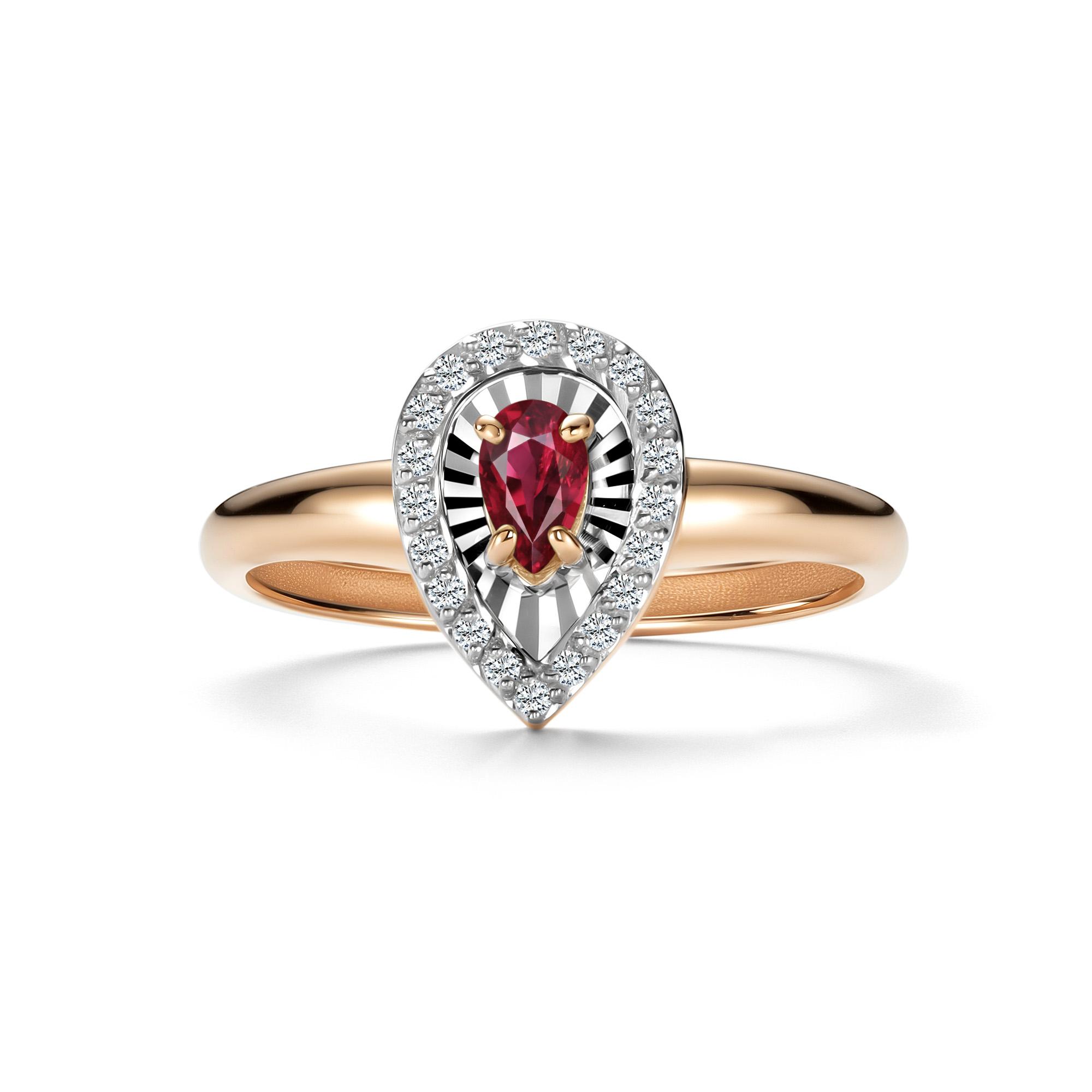 Золотое кольцо АЛЬКОР 17020-103 с бриллиантом и рубином