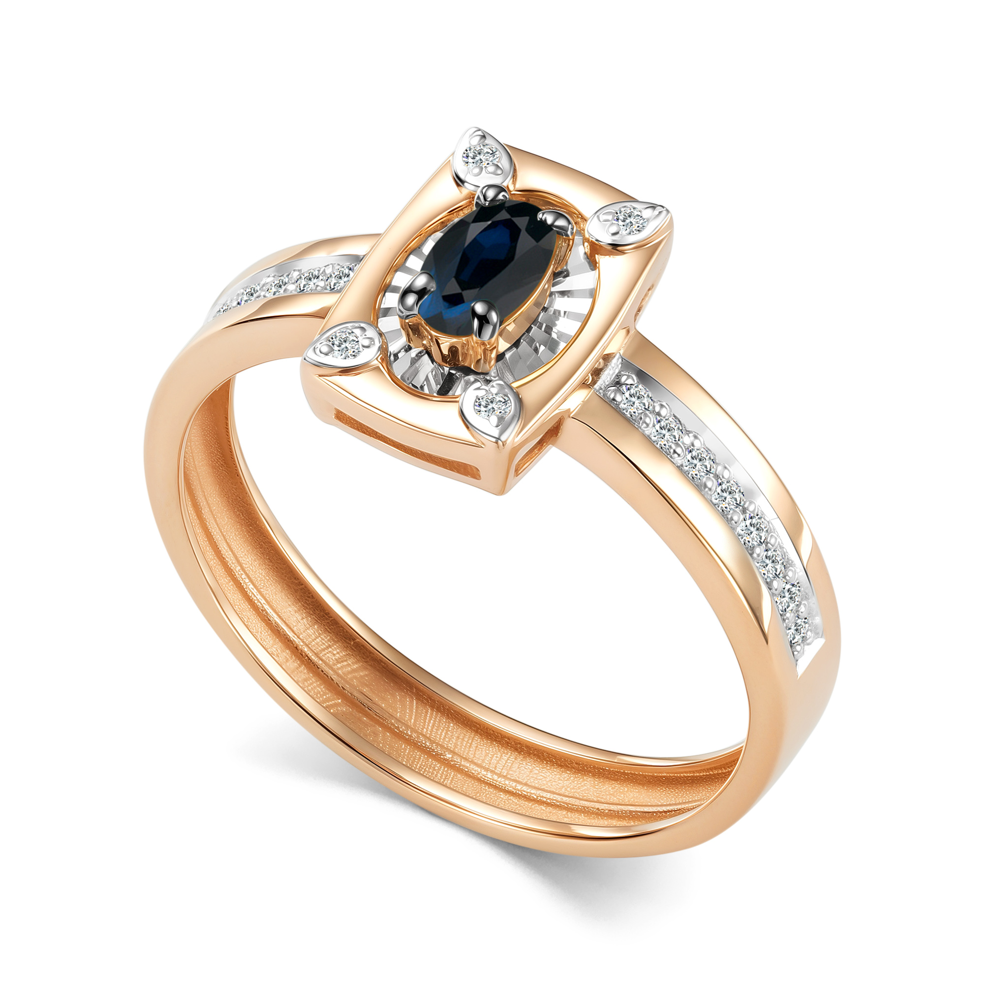 Золотое кольцо АЛЬКОР 17022-102 с бриллиантом и сапфиром