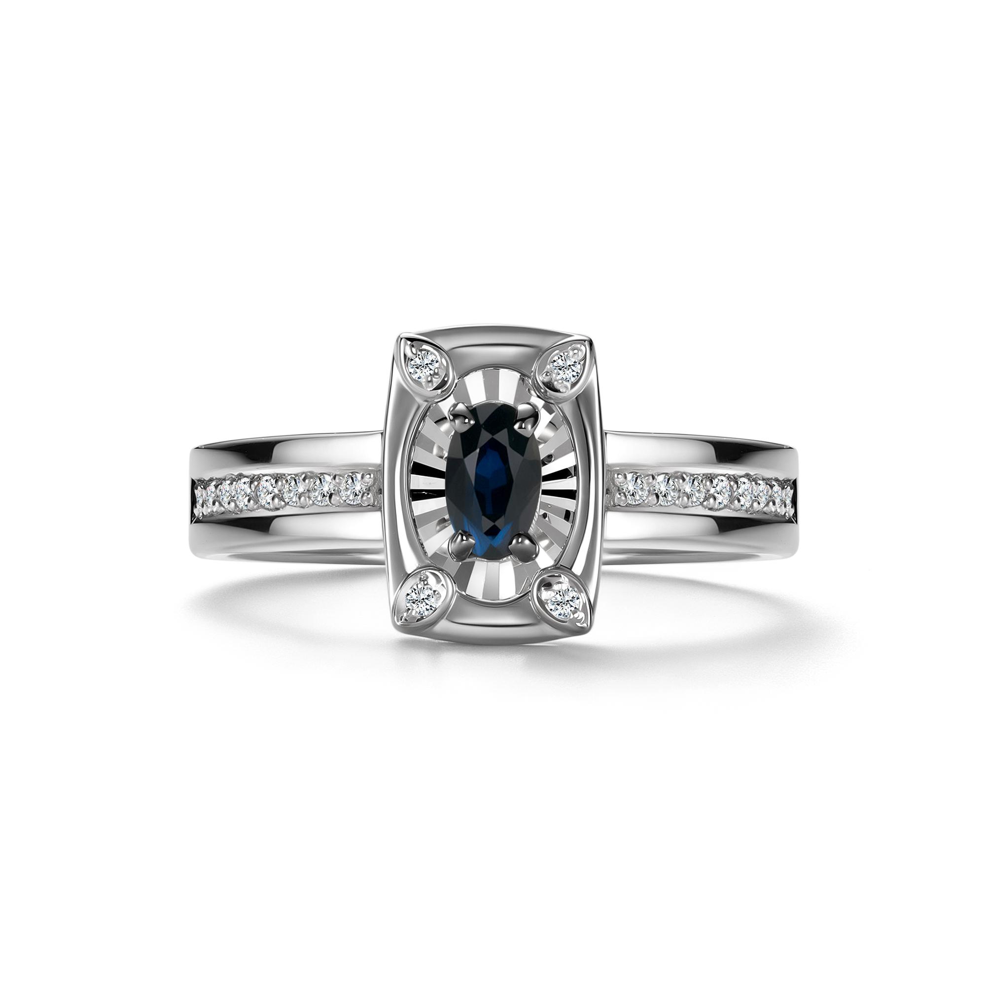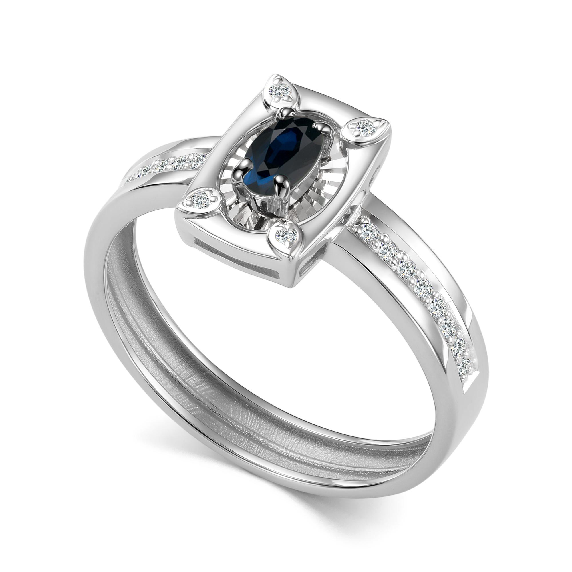 Кольцо из белого золота АЛЬКОР 17022-202 с бриллиантом и сапфиром