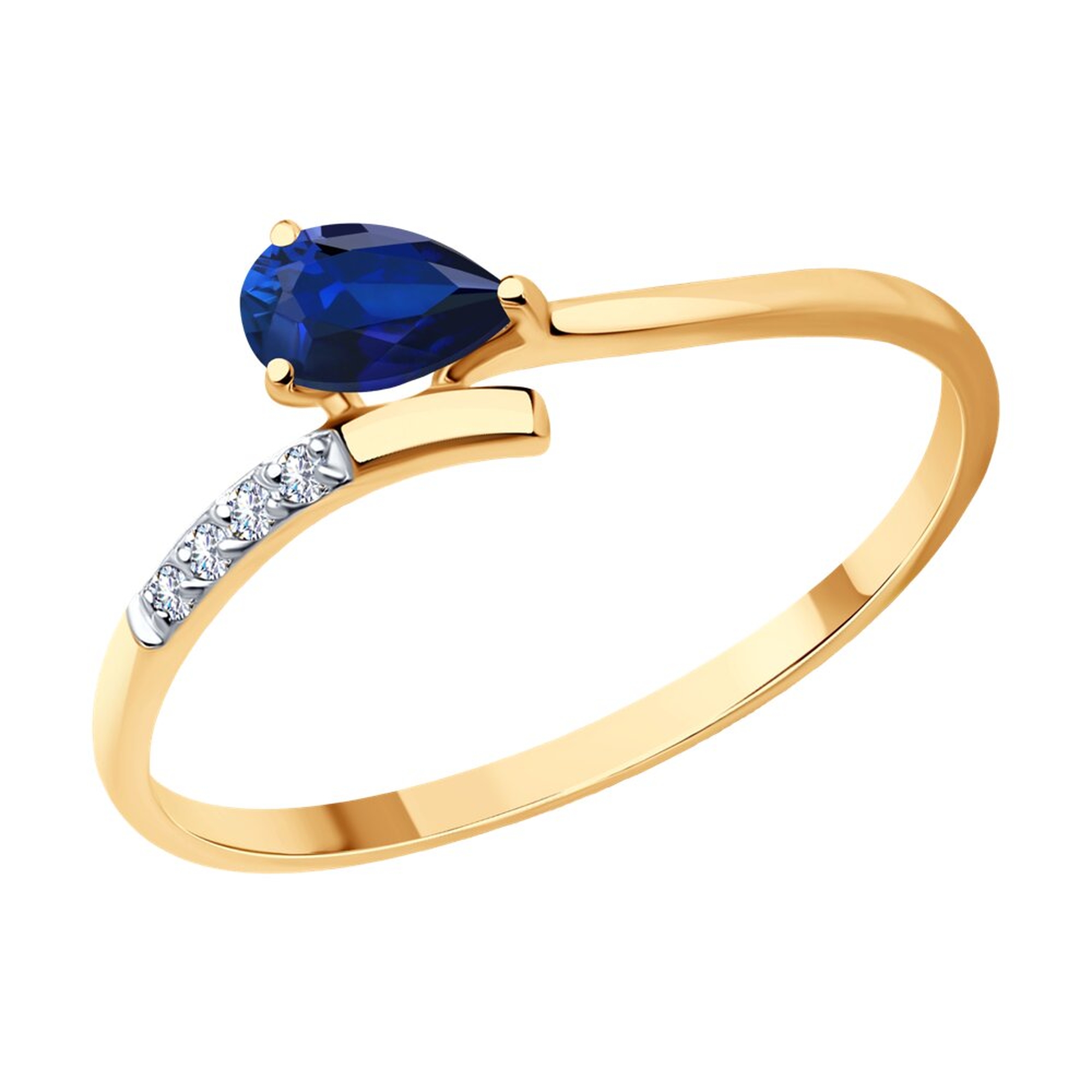 Золотое кольцо SOKOLOV 2011375 с бриллиантом и сапфиром