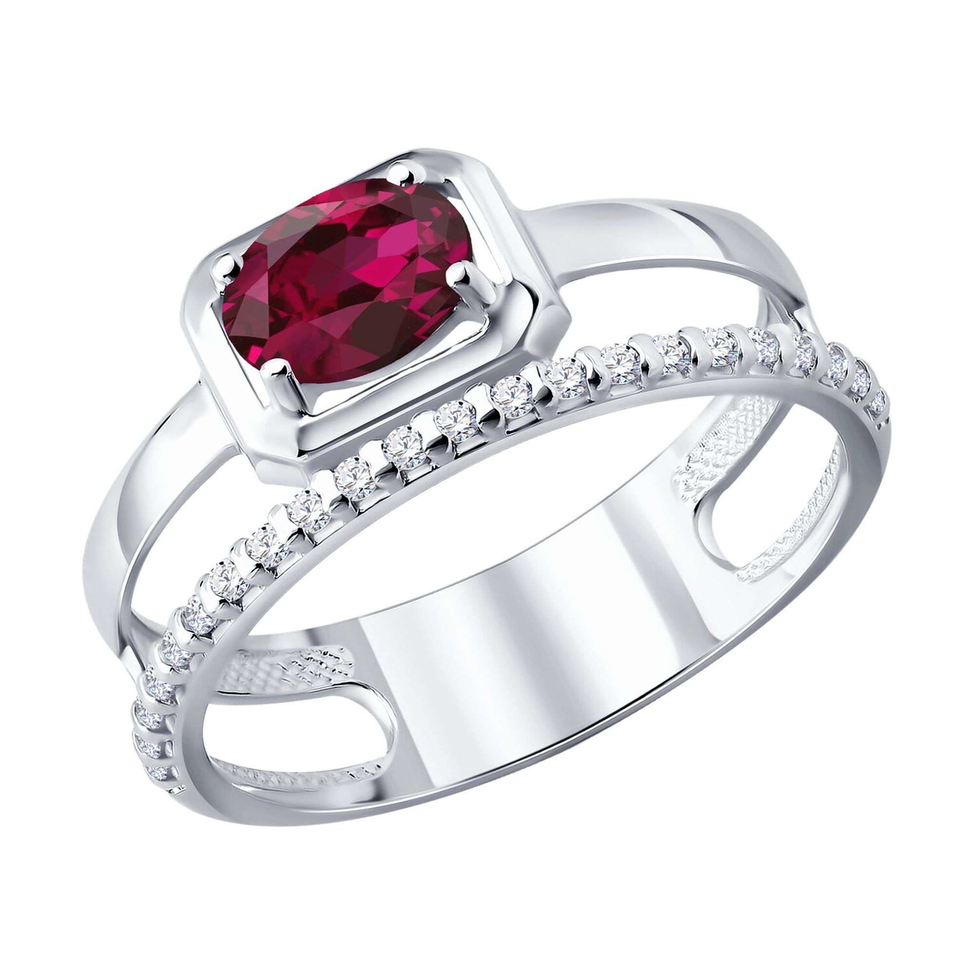 Серебряное кольцо SOKOLOV 64010006 с фианитом и рубином