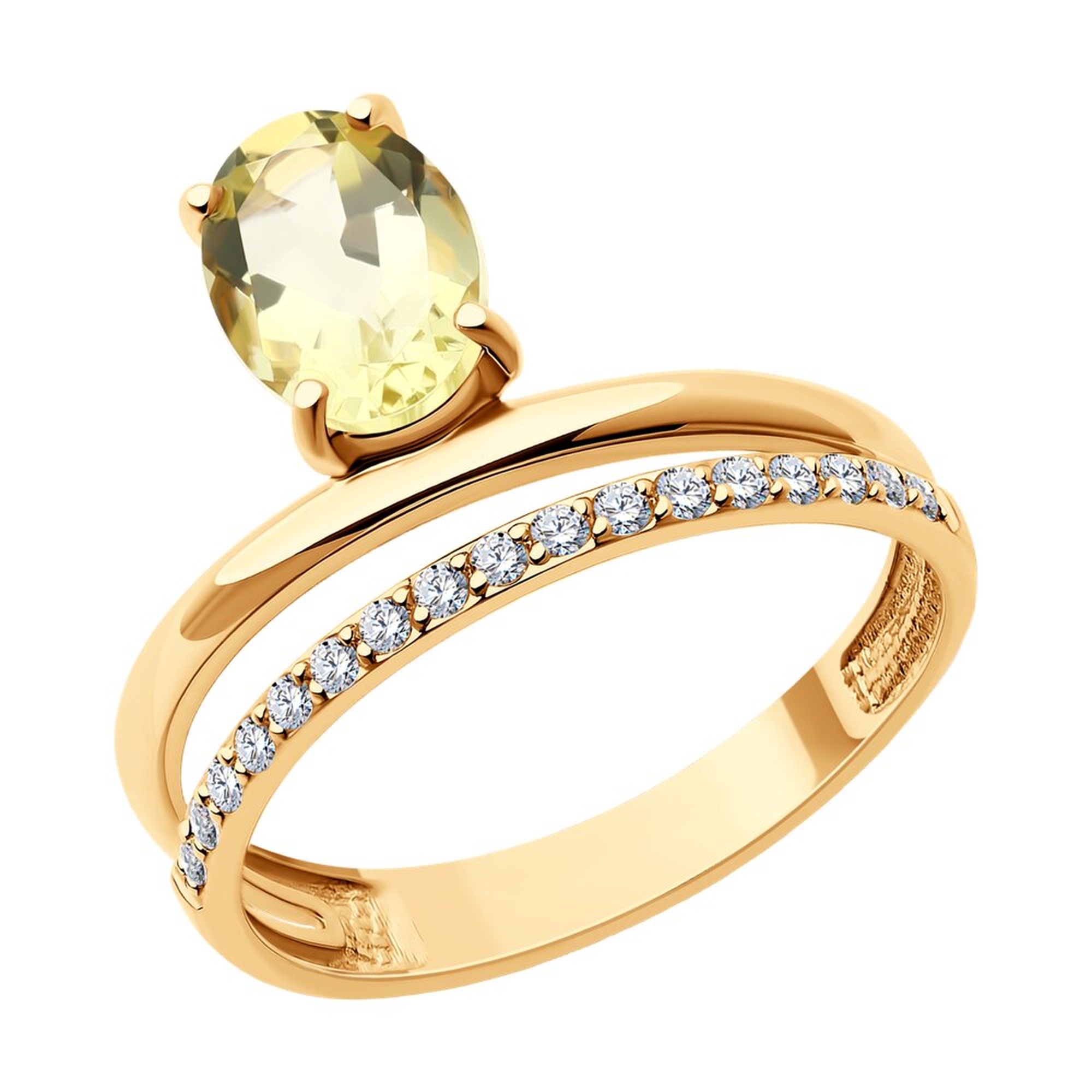 Золотое кольцо SOKOLOV 716353 с фианитом и кварцем