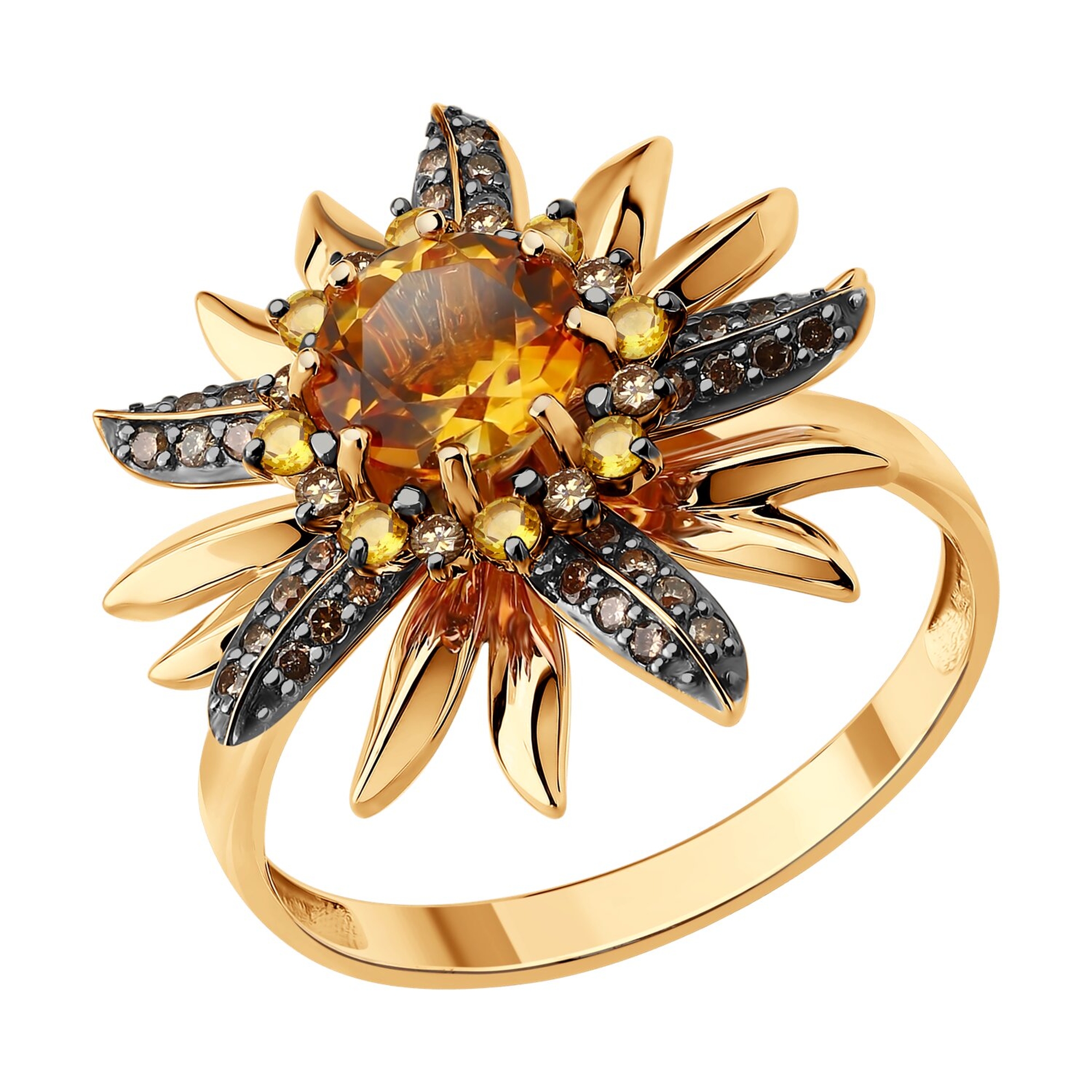 Золотое кольцо SOKOLOV 71-00446 с цитрином и коньячным бриллиантом
