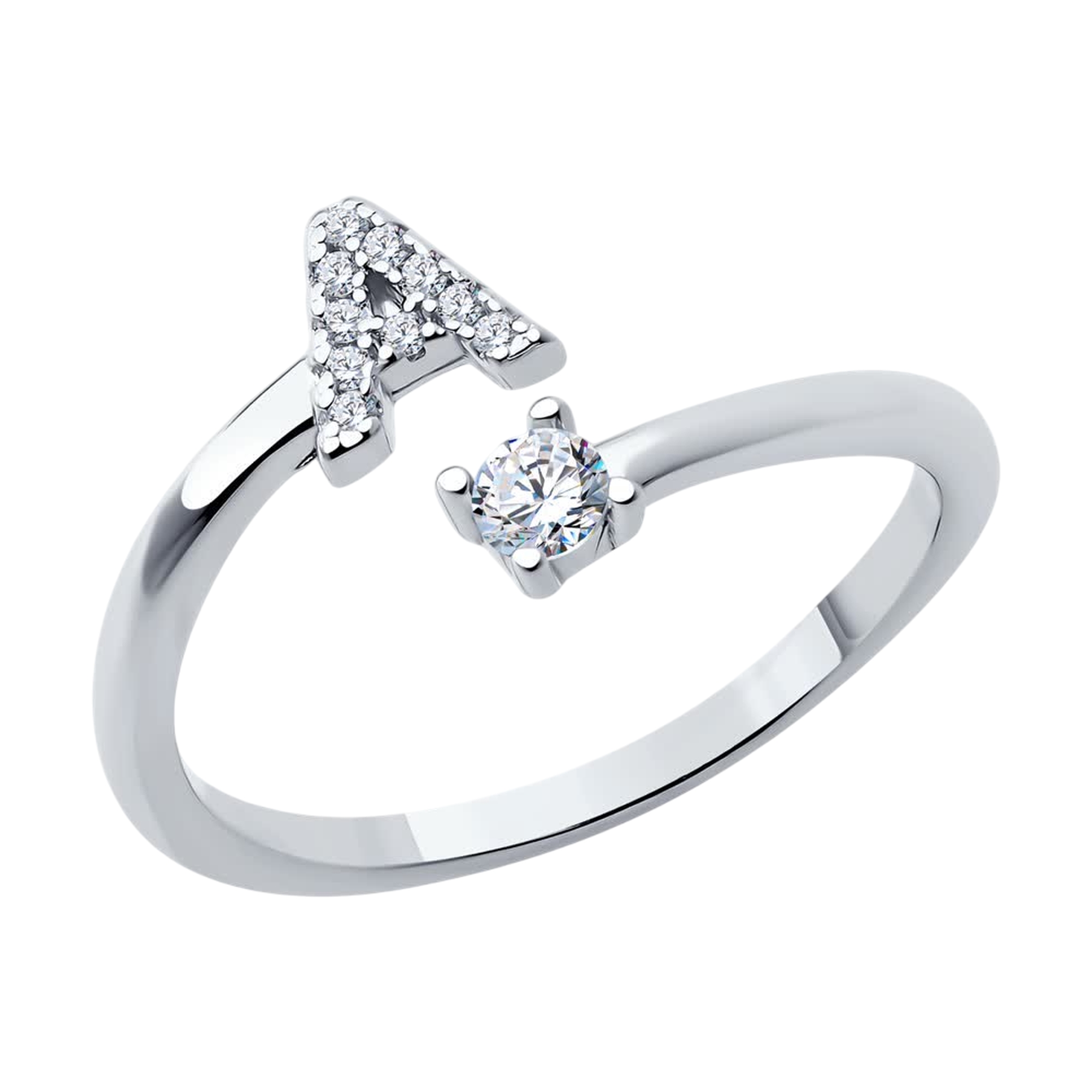 Серебряное кольцо-буква А SOKOLOV с фианитом 94014028-91