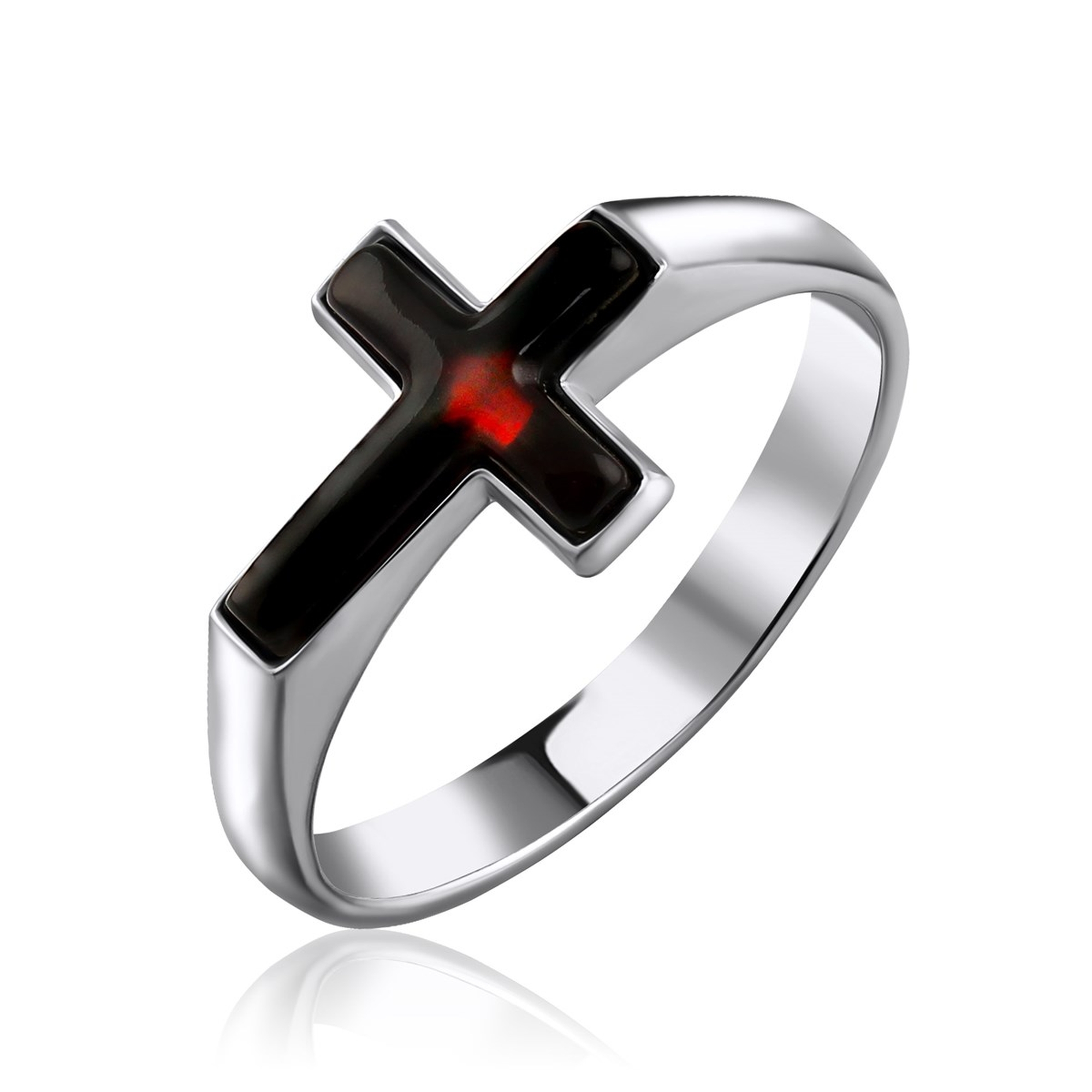 Серебряное кольцо-крест Дарвин с янтарём 120041015aa-к