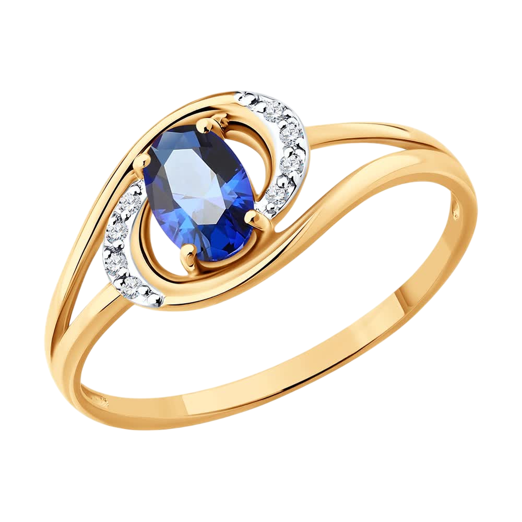 Золотое кольцо SOKOLOV 717346 с фианитом и сапфировым корундом