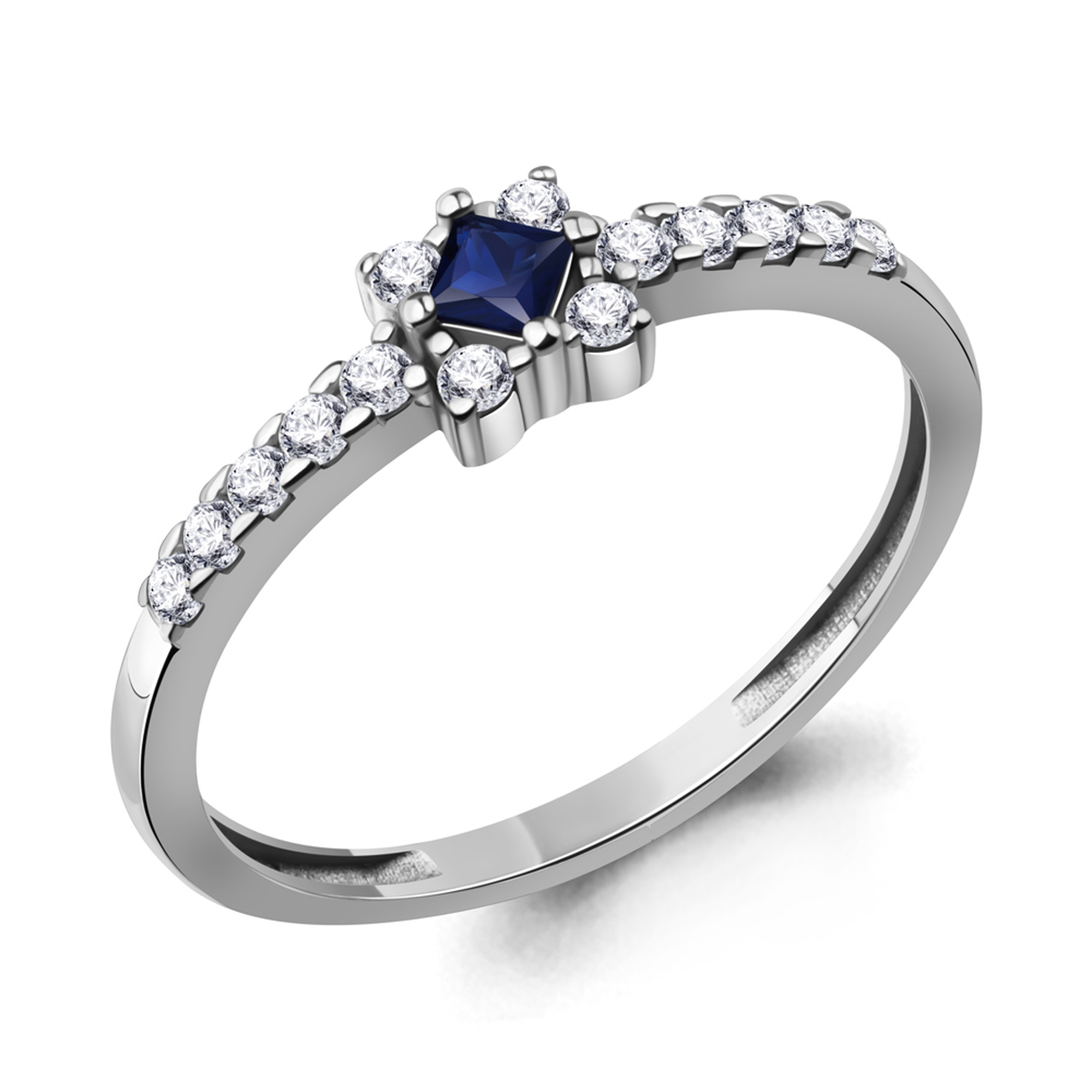 Серебряное кольцо AQUAMARINE А600496АБ с фианитом и гидротермальным сапфиром