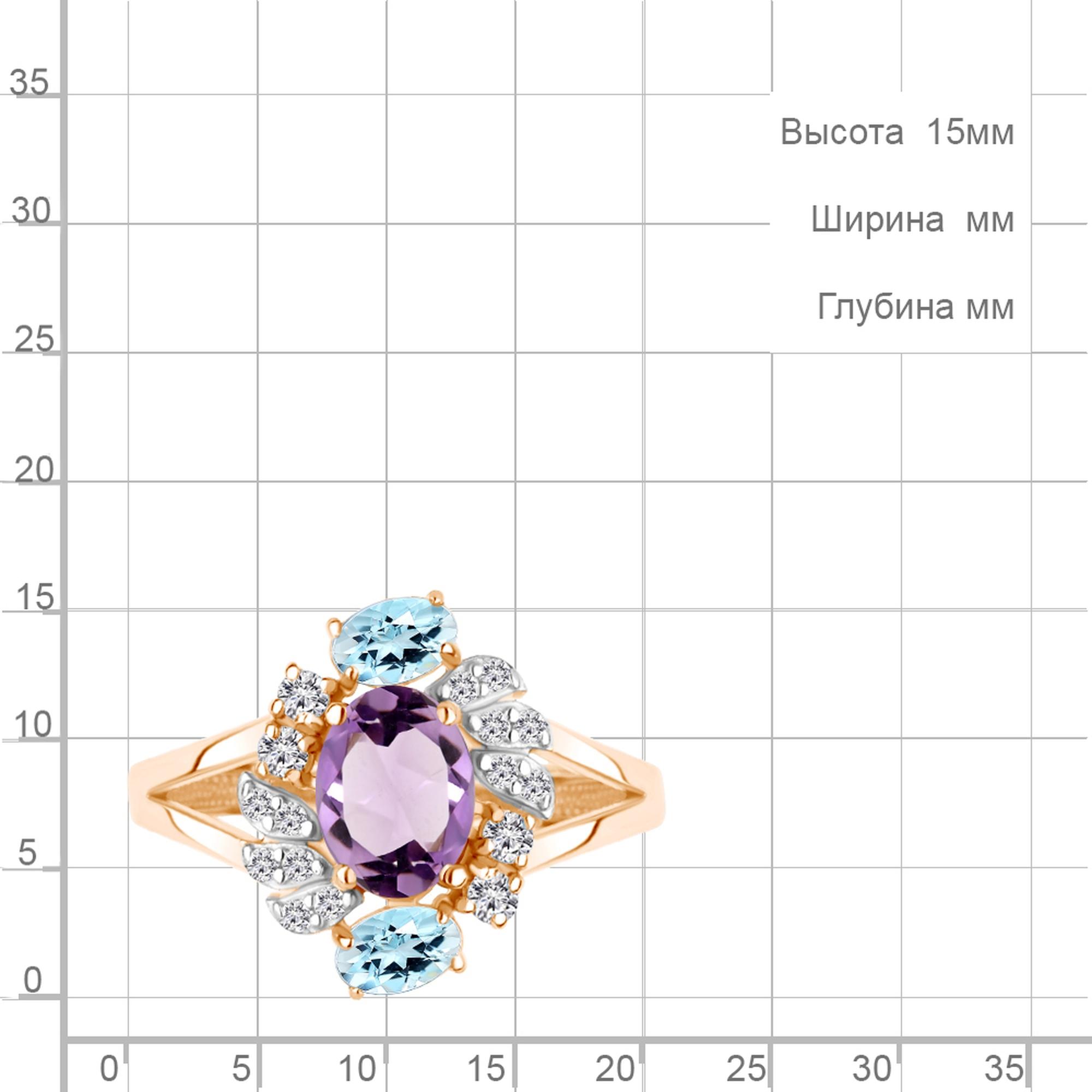 Кольцо из золочёного серебра AQUAMARINE А65030877А-п с топазом, фианитом и аметистом