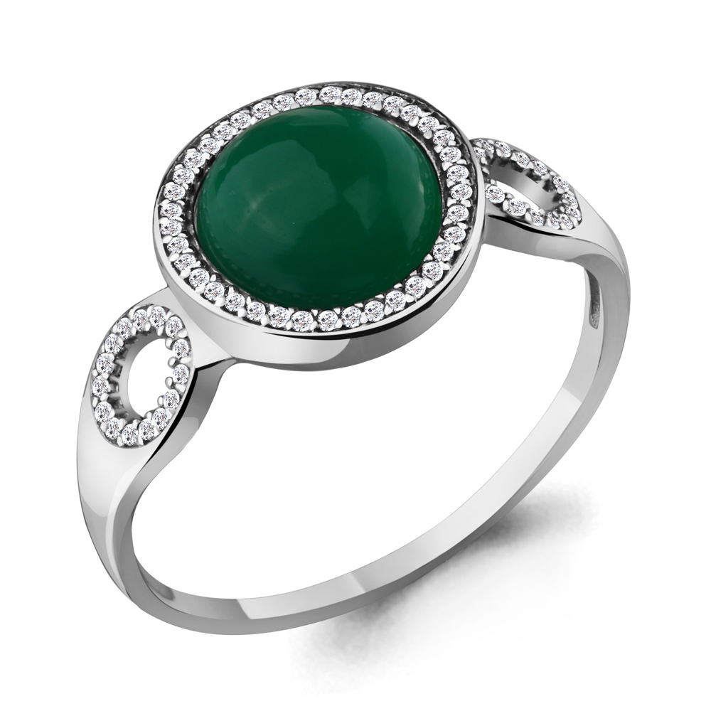 Серебряное кольцо AQUAMARINE А6551909А с фианитом и агатом