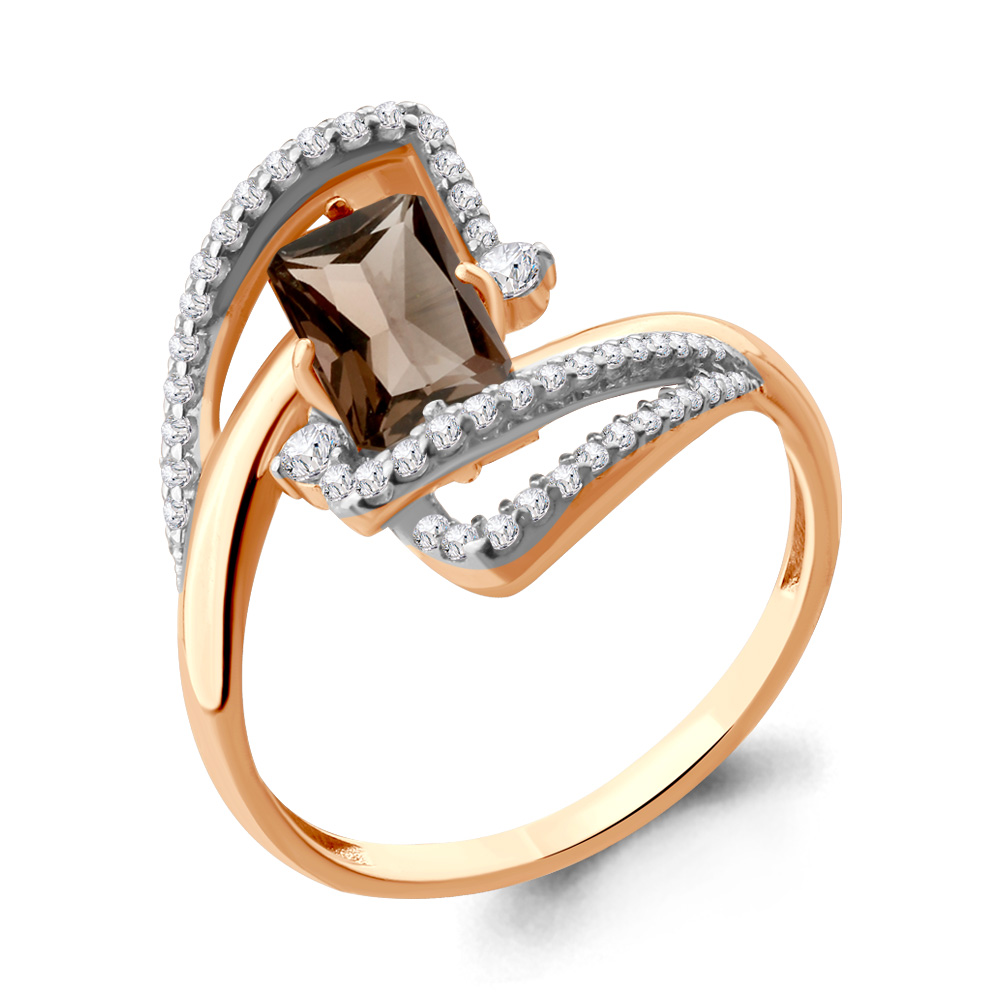 Кольцо из золочёного серебра AQUAMARINE А6579701А-п с фианитом и раухтопазом