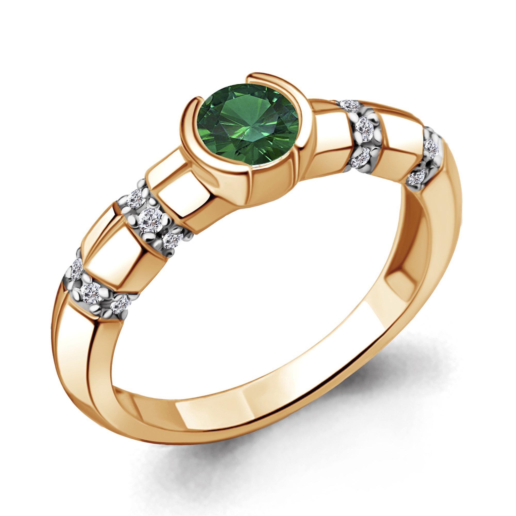 Кольцо из золочёного серебра AQUAMARINE А66655АГ-п с фианитом и гидротермальным изумрудом