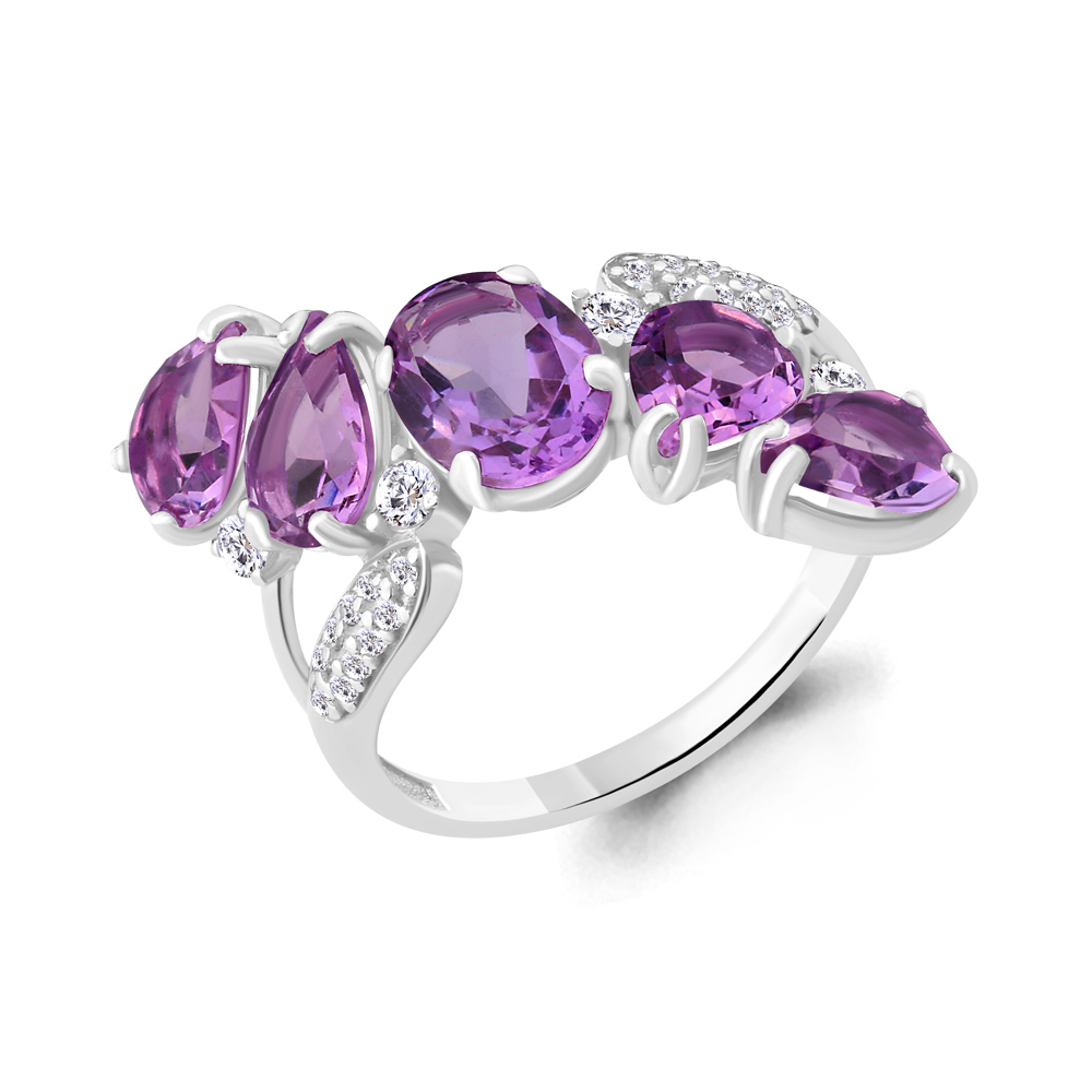Серебряное кольцо AQUAMARINE А6904404А с фианитом и аметистом