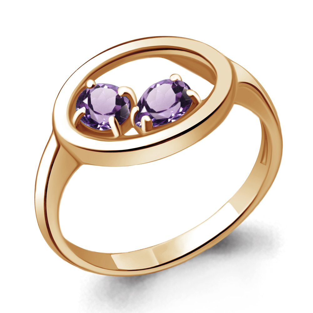 Кольцо из золочёного серебра AQUAMARINE А6933804-п с аметистом