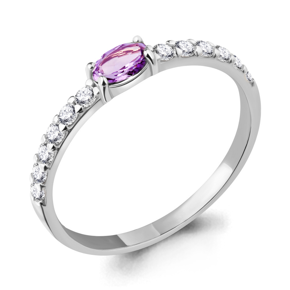 Серебряное кольцо AQUAMARINE А6946304А с фианитом и аметистом