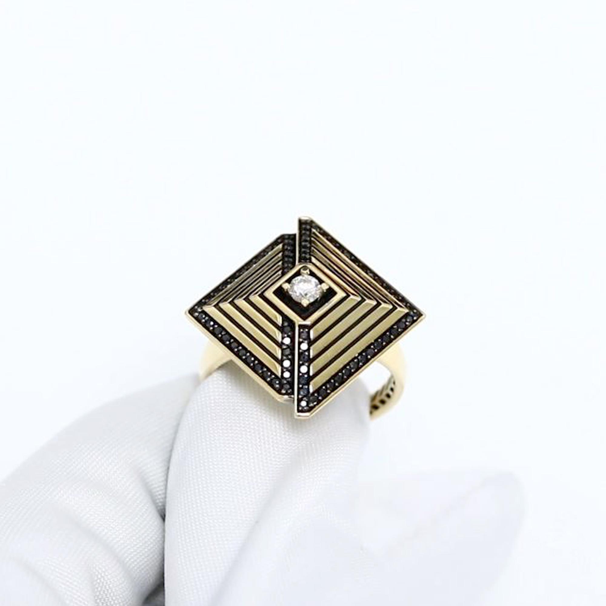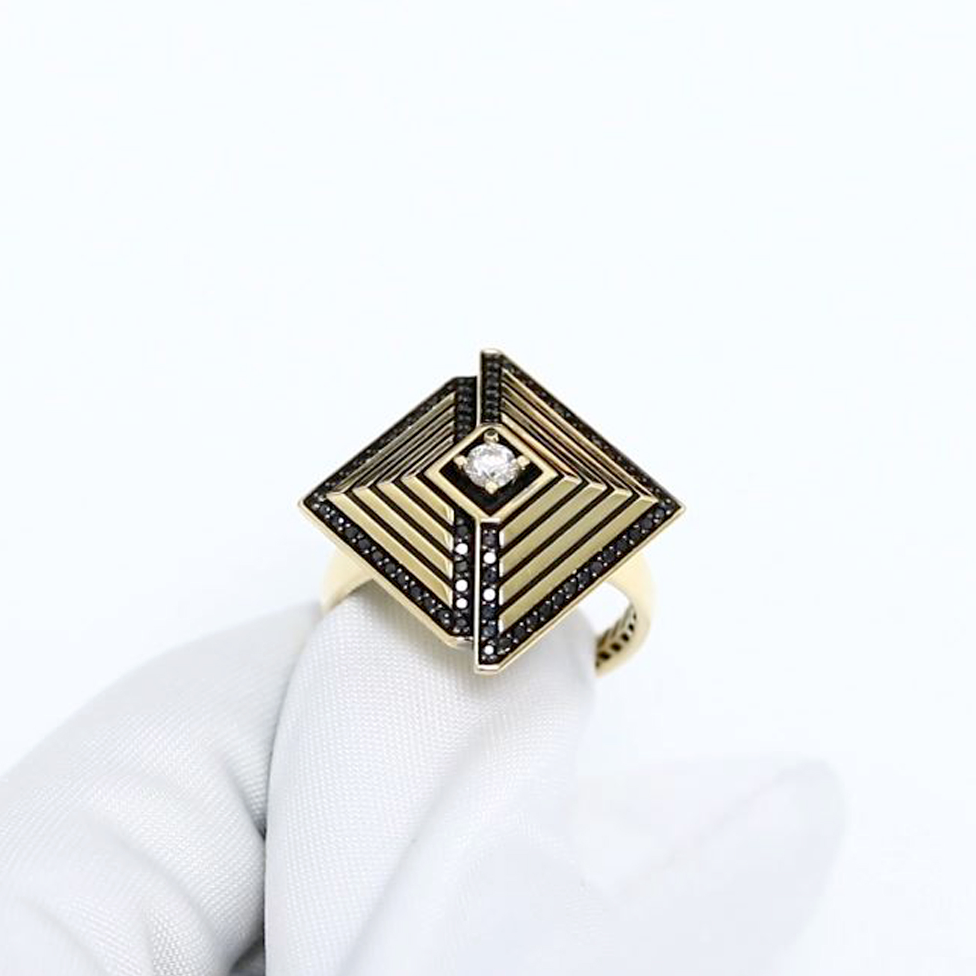 Кольцо из лимонного золота ЮК Клондайк KL01-01233-03-006-02-08 с бриллиантом и чёрным бриллиантом