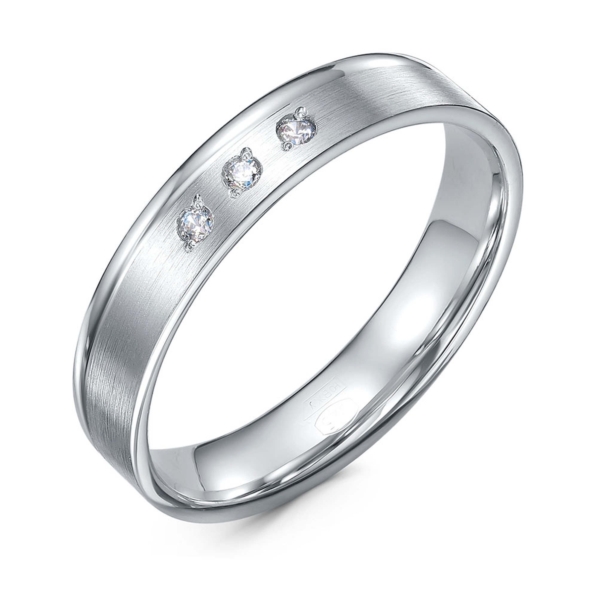 Серебряное обручальное кольцо 4 мм BERGER с фианитом Бс090039/1