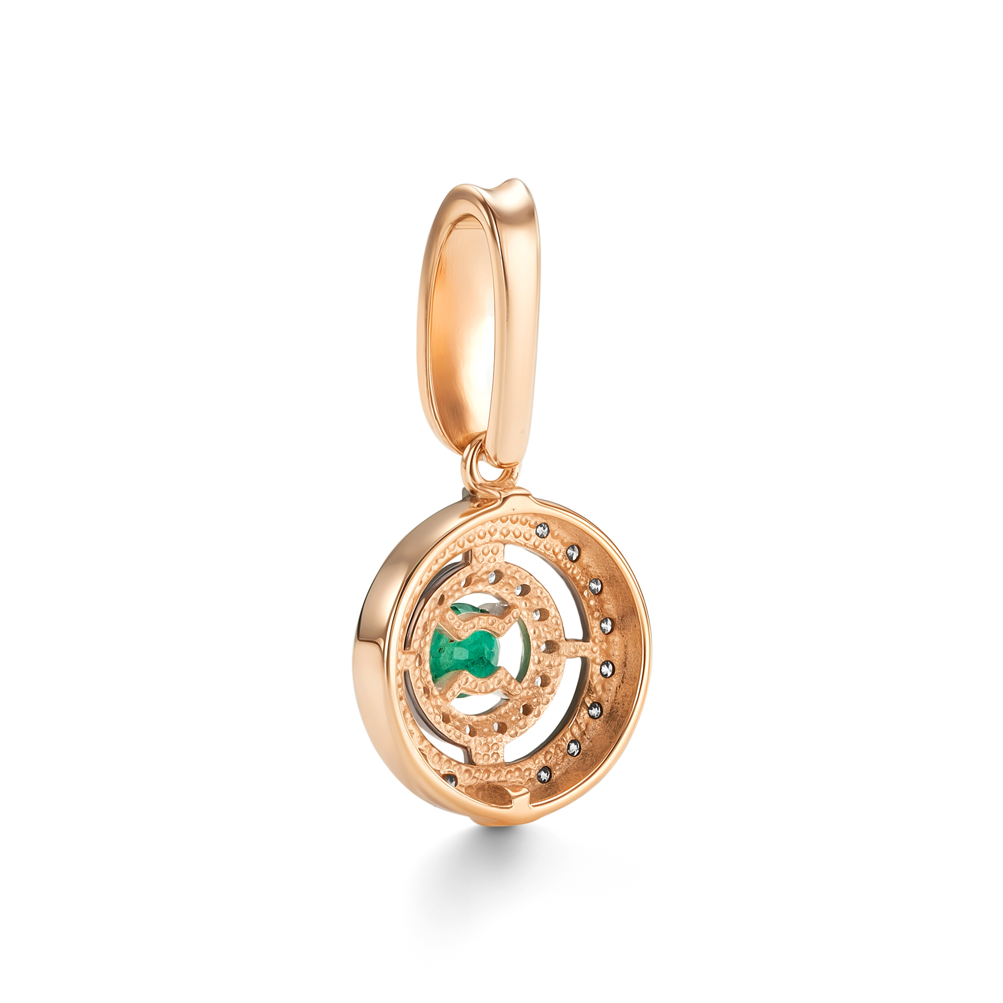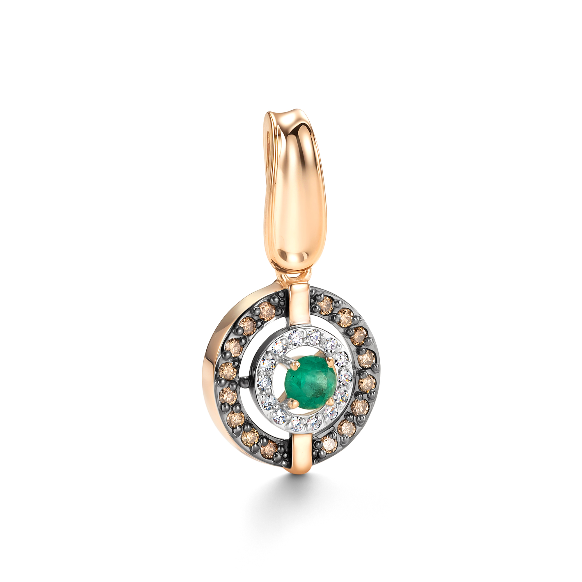 Золотая подвеска АЛЬКОР 36699-165 с бриллиантом, изумрудом и коньячным бриллиантом
