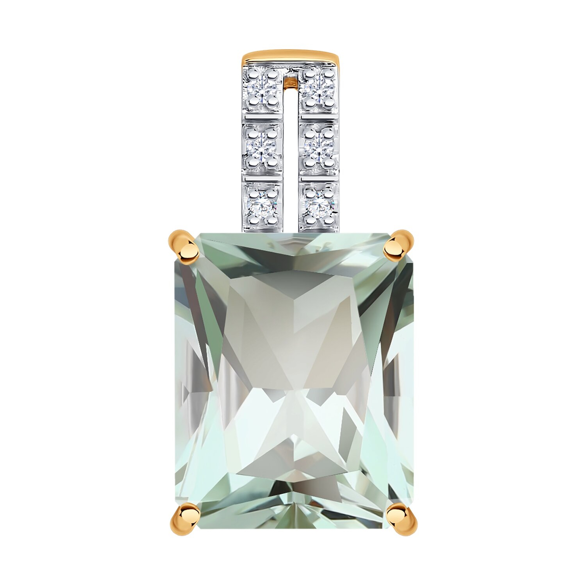 Золотая подвеска SOKOLOV 73-00192 с бриллиантом и празиолитом