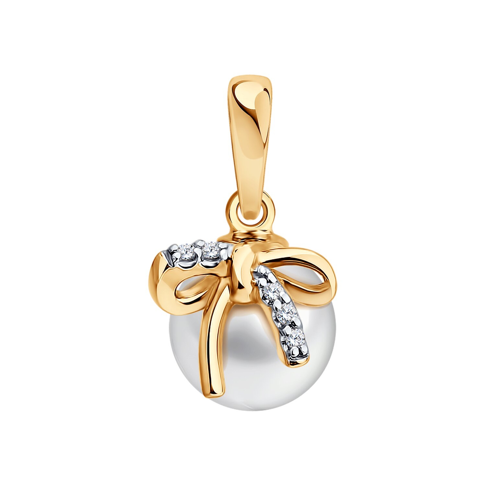 Золотая подвеска SOKOLOV 79-30035 с бриллиантом и жемчугом